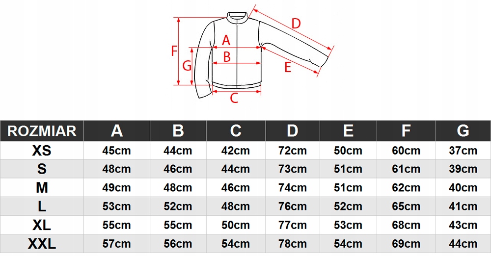 Zintegrowany kaptur przy dekolcie. Elastyczne mankiety ze ściągaczem. Po bokach znajdują się 2 kieszenie otwarte. Zapinana na jednokierunkowy zamek główny. Dół z szerokim ściągaczem.