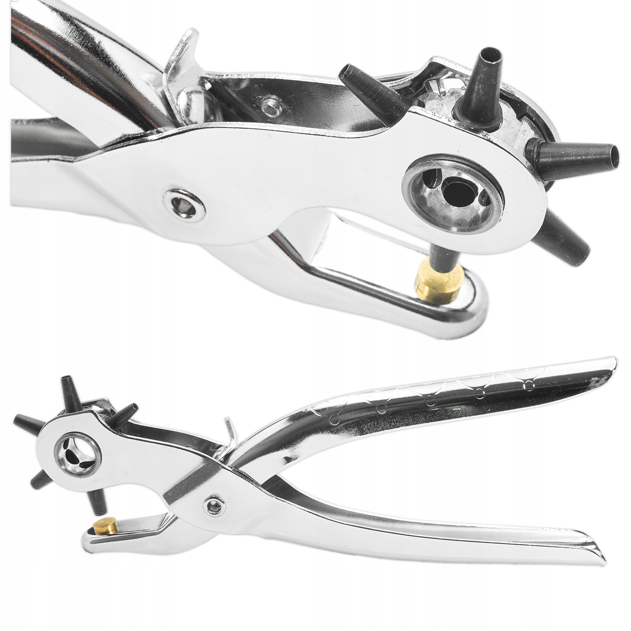 Szczypce dziurkacze mają 6 różnych rozmiarów otworów: 2 mm, 2,5 mm, 3 mm, 3,5 mm, 4 mm, 4,5 mm