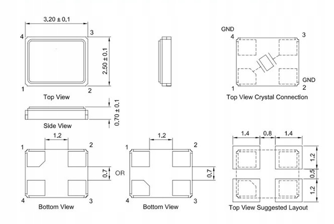 Kwarcowy Oscylator 48Mhz SMD 3225 4-PIN