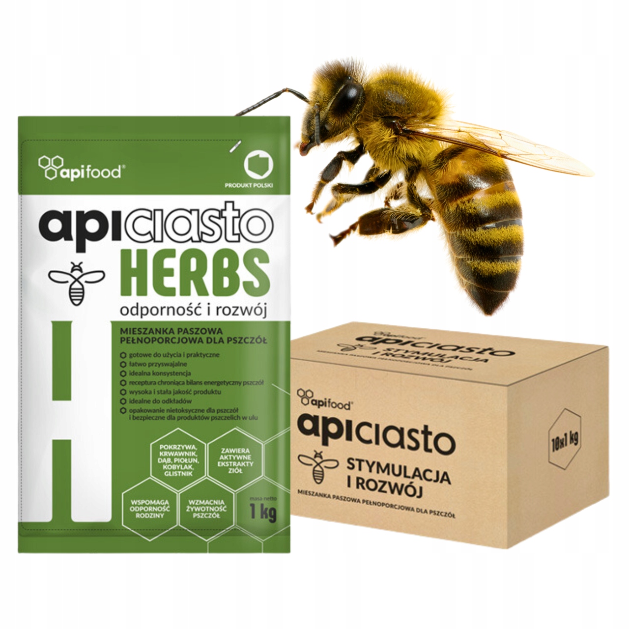 Apiciasto Herbs firmy Apifood to wysokiej jakości bezpieczny pokarm dla pszczół stworzony na bazie cukru z dodatkiem ziół. Konsystencja ciasta sprawia, że jest ono idealne do pobierania przez pszczoły. Stosuje się je głównie w okresie wiosennym, aby pobudzić pszczelą rodzinę do rozwoju czy podczas okresów bezpożytkowych.