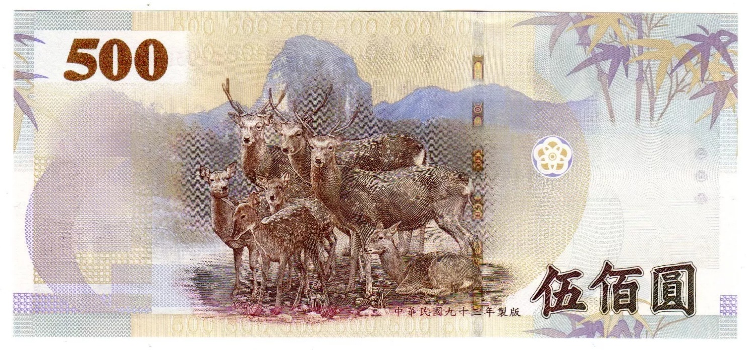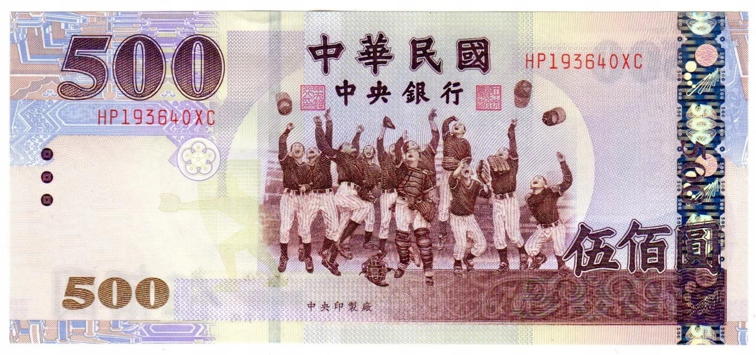 Przepiekny banknot 500 Dollars z Tajwan - 2004r. (P-1996) w absolutnie doskonalym stanie bankowym I (UNC).