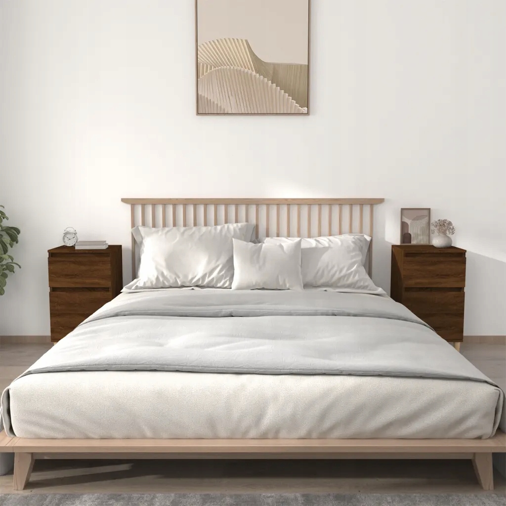 Te stylowe szafki nocne w kolorze brązowego dębu będą ponadczasowym dodatkiem do każdego wnętrza. Wykonane z wysokiej jakości materiału drewnopochodnego oraz drewna eukaliptusowego, charakteryzują się wyjątkową trwałością i eleganckim wyglądem.