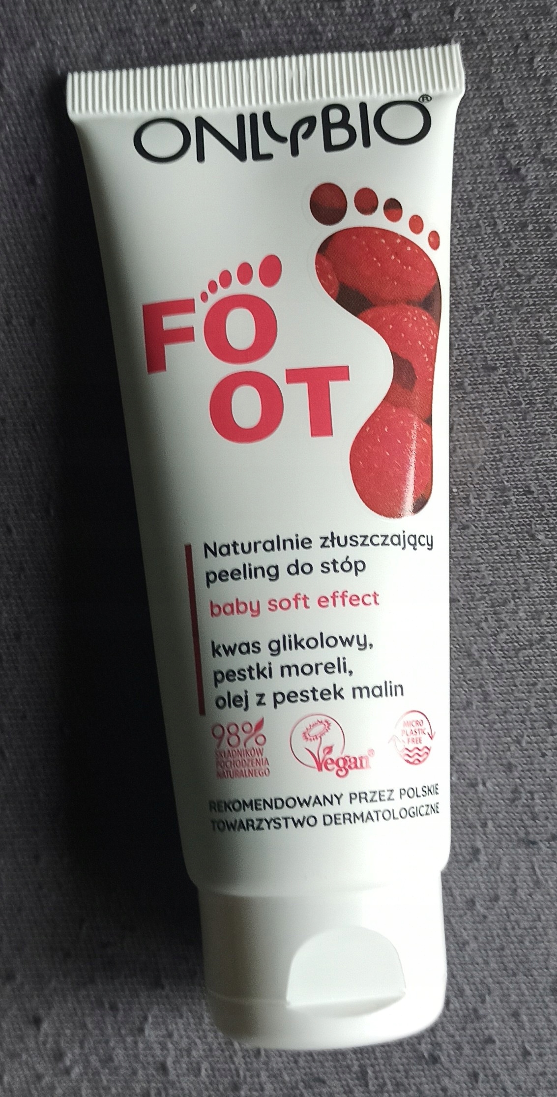 Wegańska formuła peelingu do stóp OnlyBio zawiera 98% składników pochodzenia naturalnego, dzięki którym uzyskasz baby skin effect. Przyjemna w dotyku i miękka niemal jak u dziecka skóra to rezultat, którym będziesz cieszyć się przez długi czas. Stosuj regularnie, aby czerpać radość z odżywionych i wypielęgnowanych stóp!