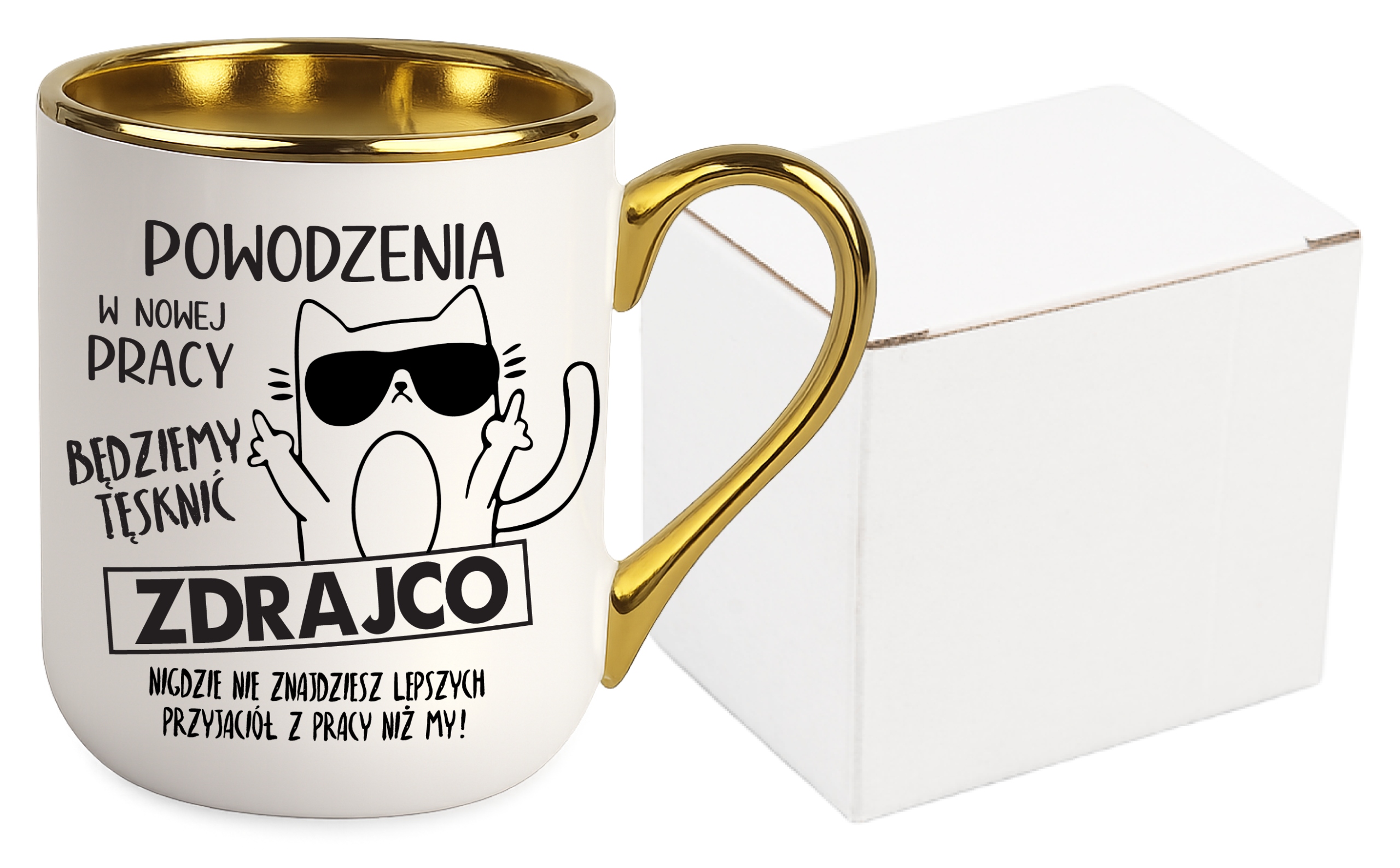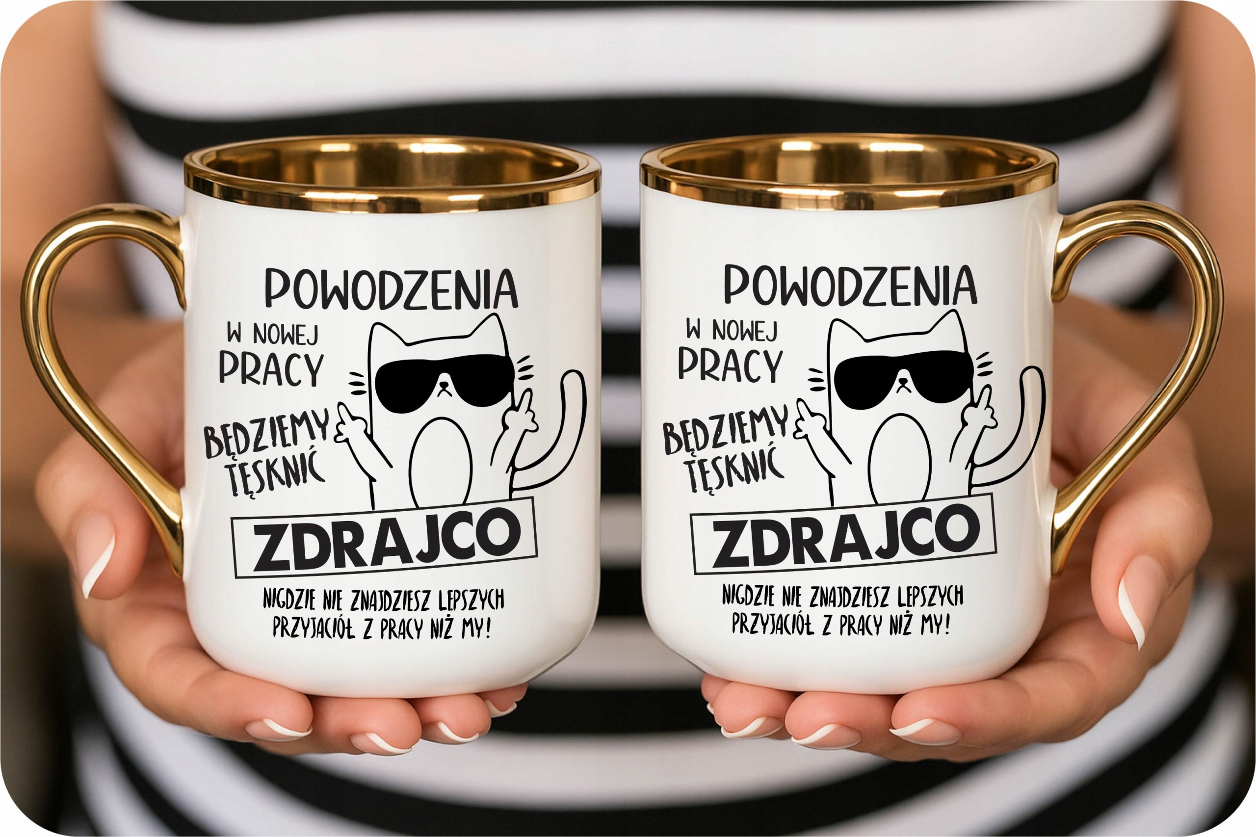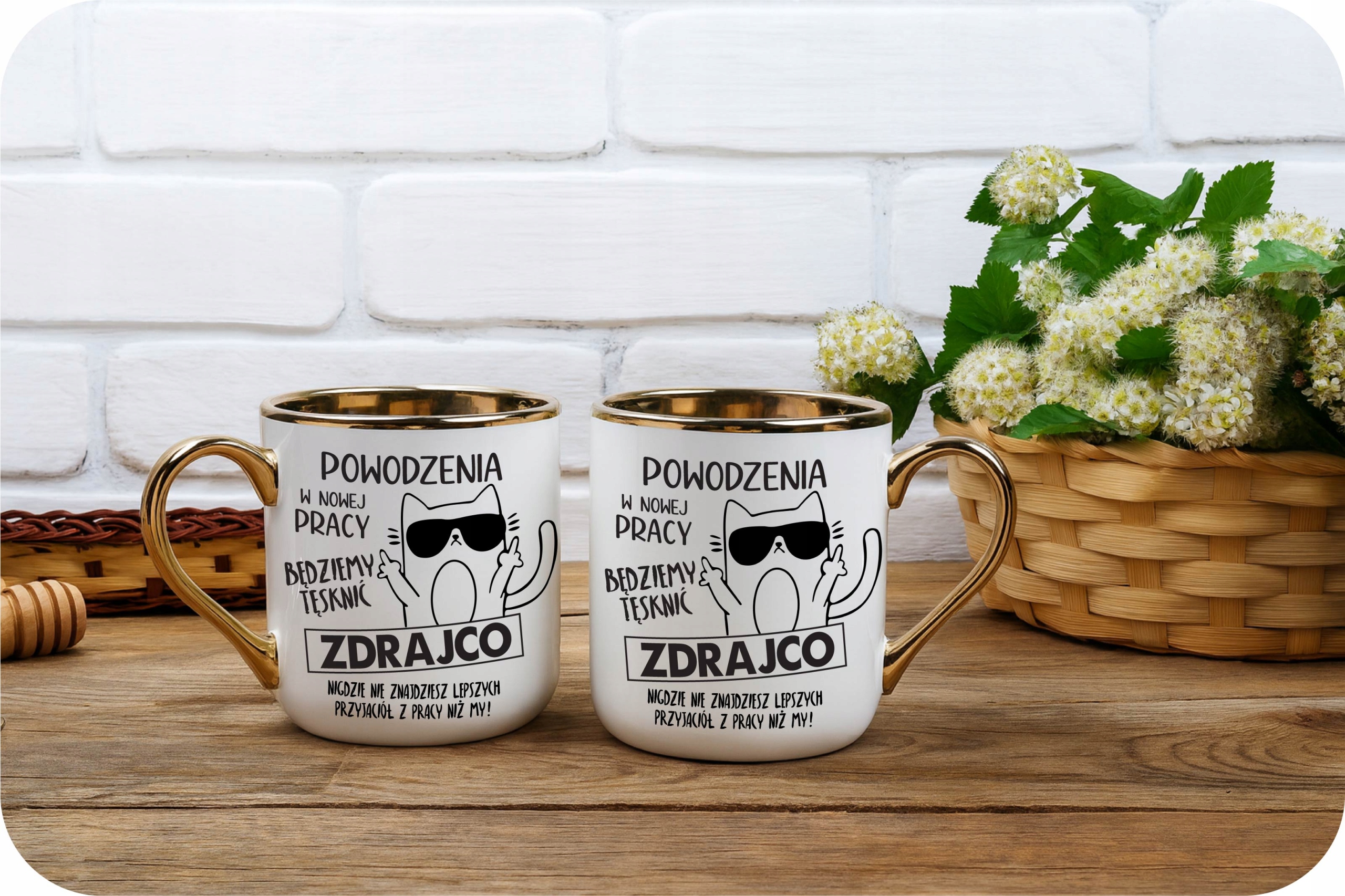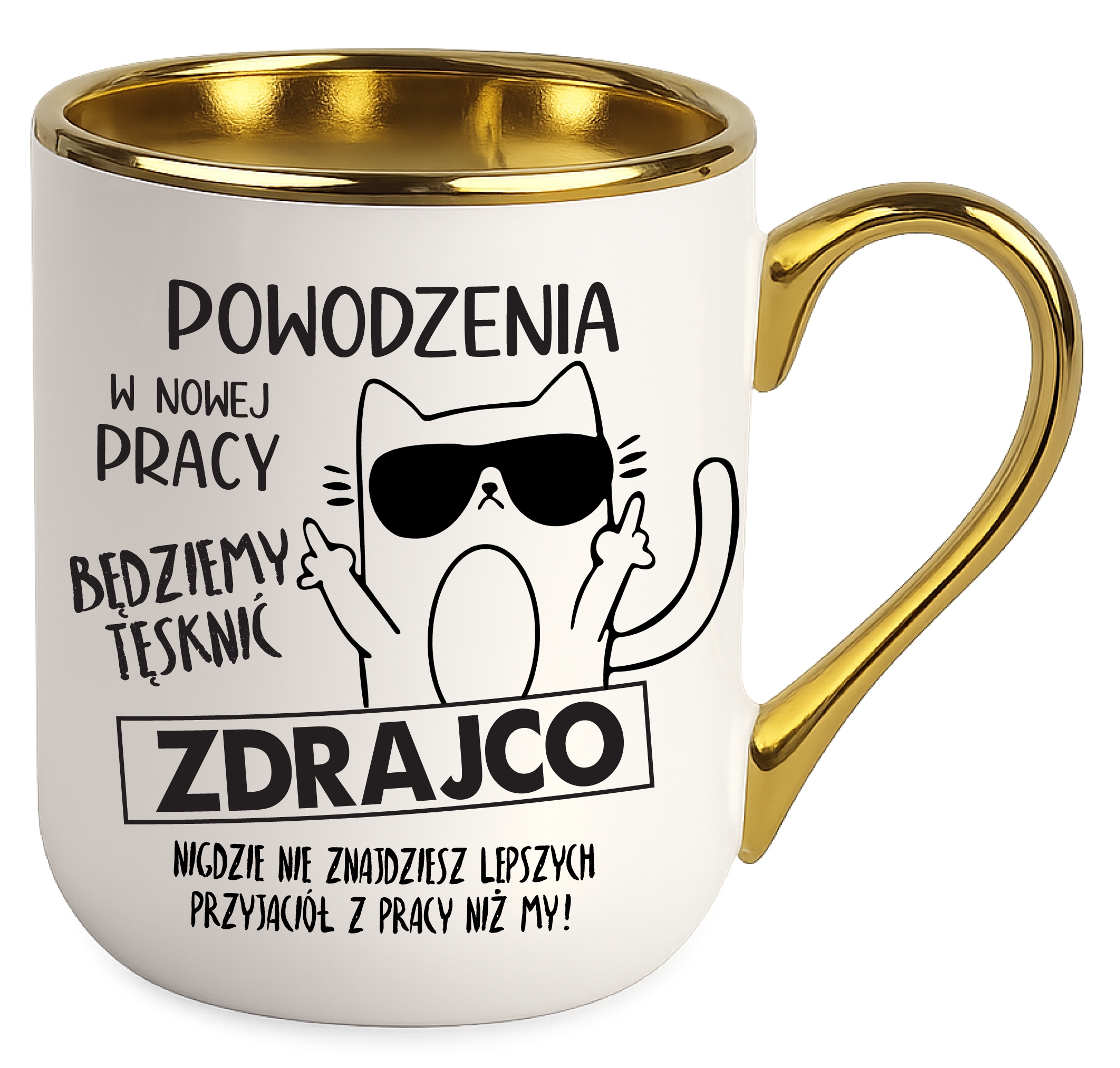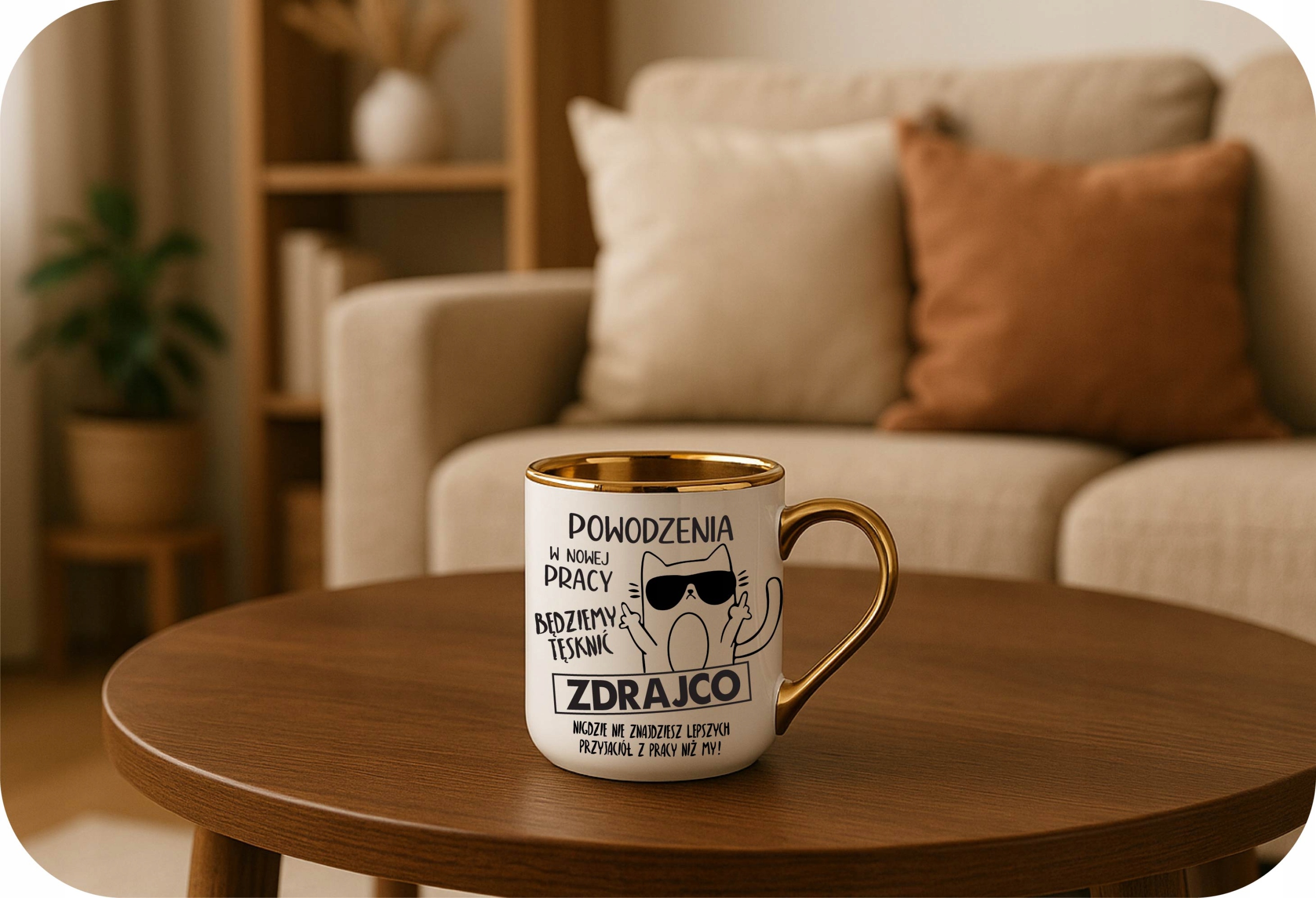 Тематика, тема Kubek prezentowy prezent na POŻEGNANIE Z PRACY ODEJŚCIE Z PRACY żłoty uchwyt rant