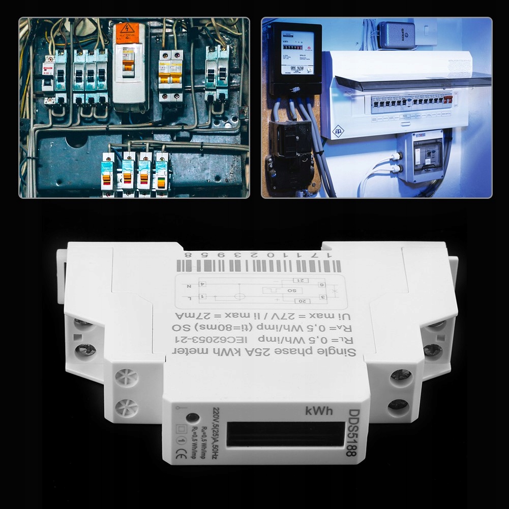 220V DDS5188 LCD Digital Din Rail Electric Miernik 5-25A na kilowatową godzinę KWH Miernik
