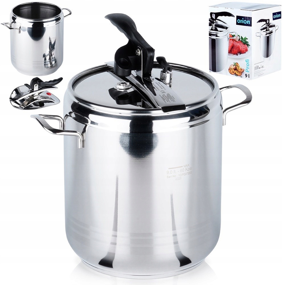 Szybkowar o pojemności 9 litrów. Podana pojemność szybkowaru dotyczy pojemności całkowitej naczynia. Pojemność szybkowarowa to 2/3 pojemności całkowitej. Z jego pomocą będziemy mogli przygotować pyszne potrawy w znacznie krótszym czasie. Szybkowar jest łatwy w obsłudze i bezpieczny. Oryginalny produkt czeskiej marki Orion. Wyprodukowano zgodnie z europejskimi standardami.