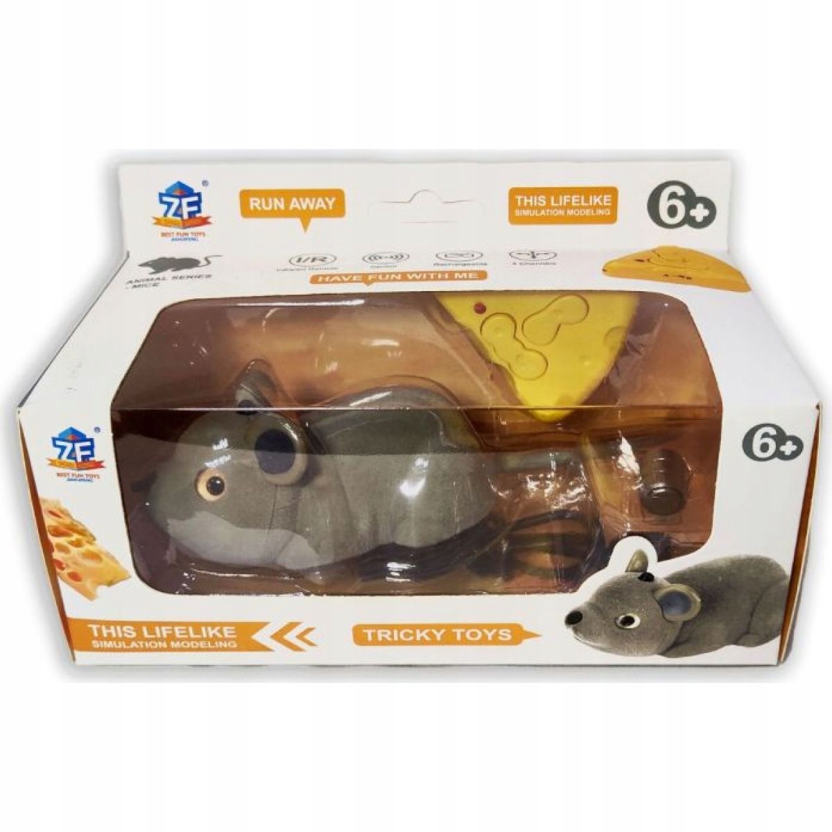 Mysz zdalnie sterowana za pomocą infrared. Zestaw zawiera mysz i kontroler w kształcie sera. Mysz posiada tryb ruchu demo, a także może być zdalnie sterowana. Mysz jeździ do przodu, do tyłu, w lewo, w prawo. Po przytrzymaniu przycisku w lewo lub w prawo mysz obraca się o 360°. Zabawka wymaga baterii 1× 3,7V i 3× LR44, obu części. Zasięg kontrolera do 8 m. Czas gry ok. 30 min. Do wyboru dwie opcje kolorystyczne. Nadaje się dla dzieci od 6 lat.
