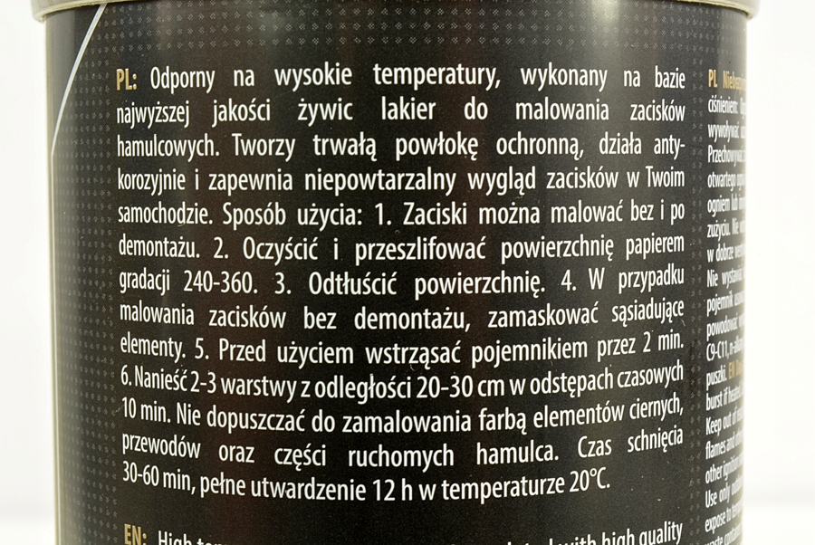 K2 Brake Caliper Paint to profesjonalny lakier do malowania zacisków i bębnów hamulcowych . Specjalna receptura farby do zacisków została opracowana na bazie najwyższej jakości żywic. Dzięki temu K2 Brake Caliper Paint tworzy trwałą powłokę o wysokiej odporności temperaturowej, nawet do +260 stopi Celsjusza.