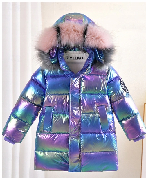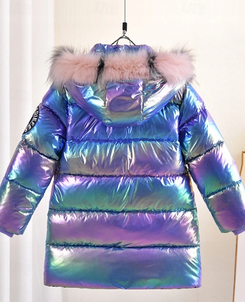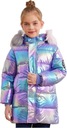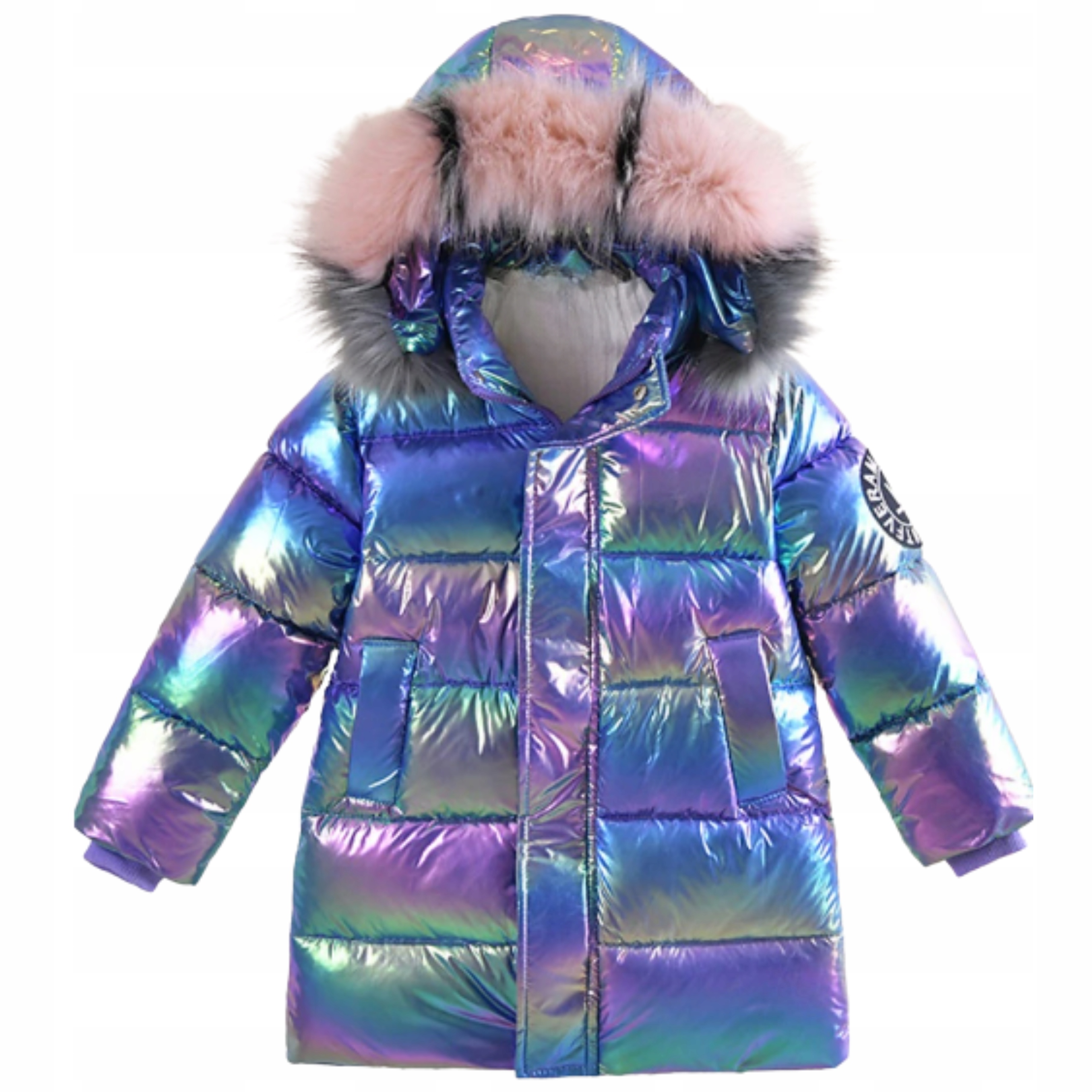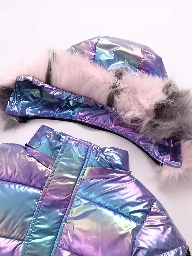 Kurtka zimowa dla dziewczynki puchowa holograficzna z futerkiem i kapturem (#1277)