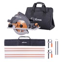 Pilarka tarczowa R185CCSX+ kompatybilna z torami o średnicy 185 mm jest wyposażona w ulepszoną wersję tarczy z węglika wolframu z zębami 20T do cięcia wielu materiałów, zintegrowane oświetlenie LED, ukierunkowany przepływ powietrza zapewniający czystsze cięcia, długi kabel o długości 4 m oraz wytrzymałą torbę transportową. Dzięki większemu zasięgowi, wsparciu i kompatybilności ze wszystkimi naszymi torami i większością innych marek, jest to idealna piła tarczowa do większości projektów.