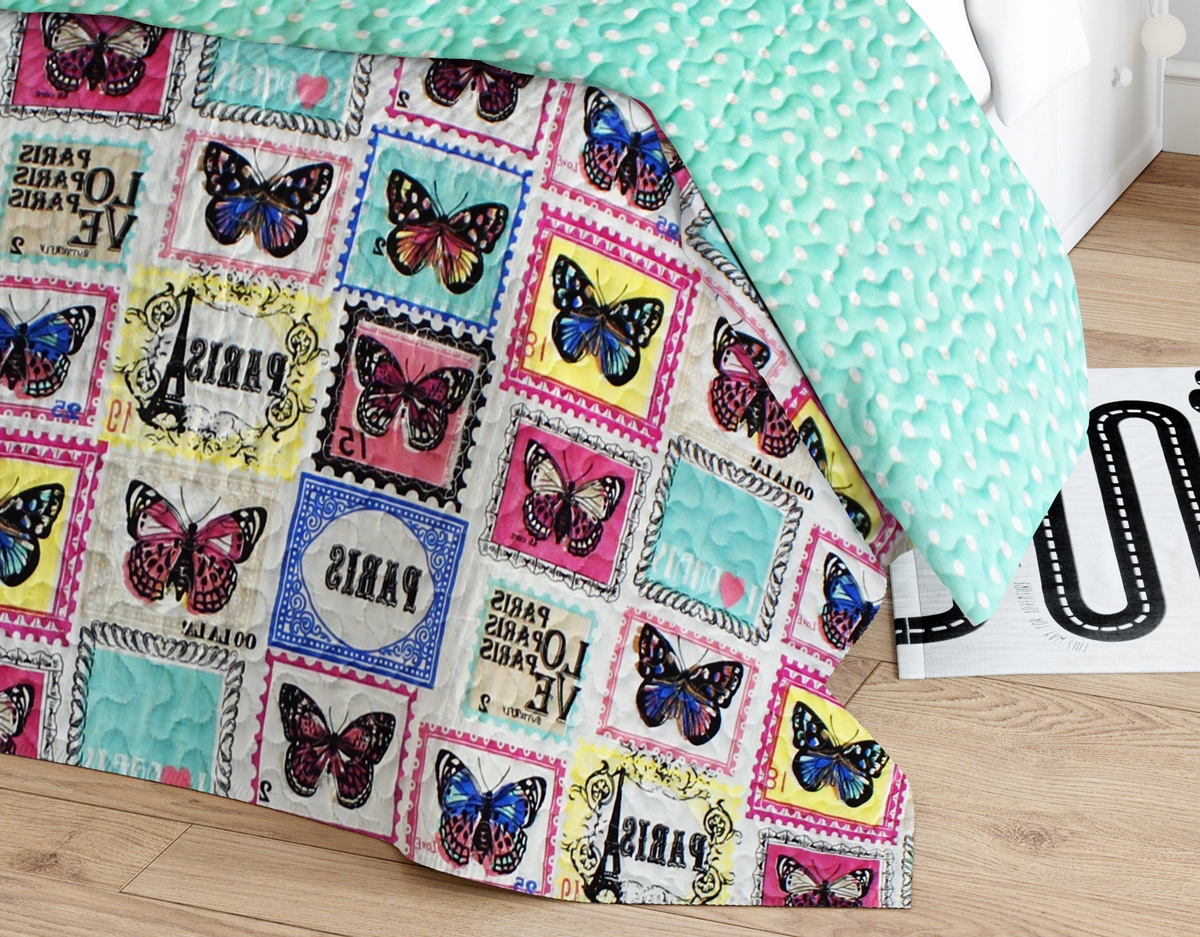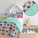 Narzuta Magic Ventura o wymiarze 200x220 cm zachwyca barwnym wzorem pełnym motyli, serc, paryskich akcentów i pasteli. Idealnie pasuje do młodzieżowego pokoju, nowoczesnej sypialni lub jako energetyczny akcent w klasycznym wnętrzu.