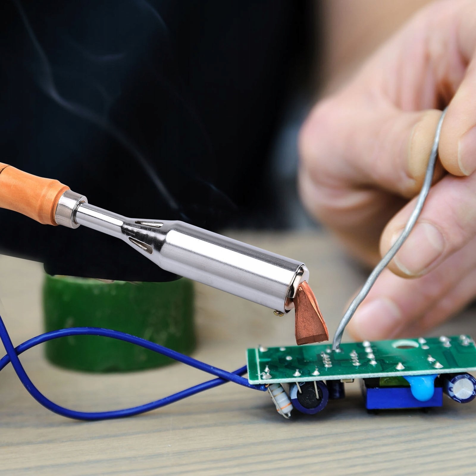 4. Lutownica ma antypoślizgową rękojeść z drewna, stabilną pracę, dobrze rozprowadzane ciepło i jest bezpieczna w użyciu