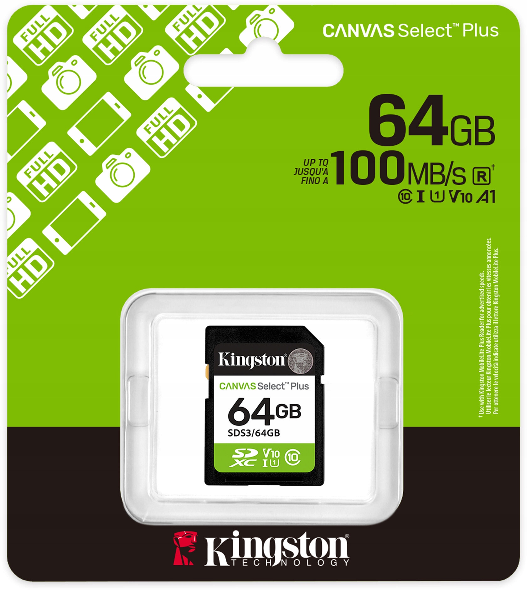 Karta SD Kingston Canvas Select Plus zapewnia niezawodną wydajność i szybkość do 100MB/s - idealną do aparatów fotograficznych i nagrywania filmów w jakości Full HD. Dzięki szybkości klasy 10 UHS-I gwarantuje płynną i stabilną wydajność. Trwała i wszechstronna - doskonale nadaje się do codziennego przechowywania plików.