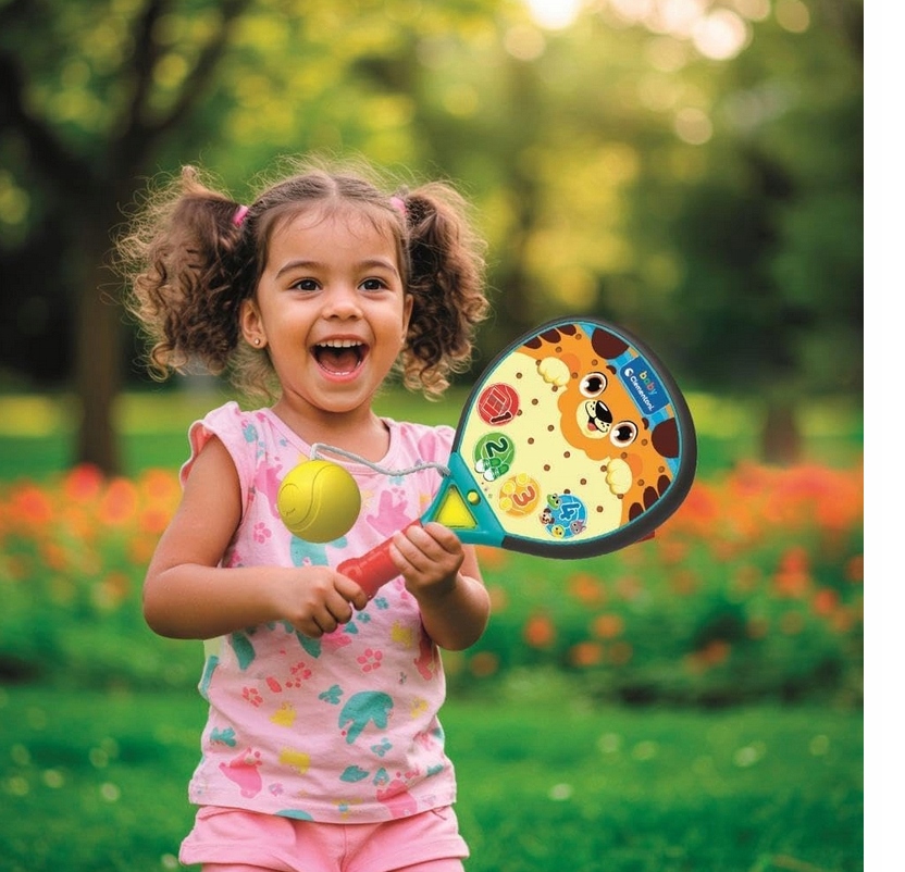 Rakietka jest również elektronicznym centrum aktywności, które uczy pierwszych liczb i pierwszych słów, zachęcając dziecko piosenkami i rymowankami do naśladowania ruchów gracza w padla.