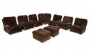 Mebel charakteryzuje się modułową konstrukcją, która umożliwia dowolne konfigurowanie układu, dostosowując go do indywidualnych potrzeb i przestrzeni. Komplet obejmuje zarówno segmenty siedziskowe, jak i podnóżki, tworząc funkcjonalną strefę relaksu.