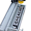 ☑️ Silnik oraz kamień ścierny obsadzone zostały na prętach prowadzących. Łożyskowane prowadnice zapewniają łatwy i płynny posuw.