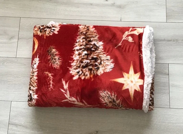 Mięciutki koc dwustronny z mikrofibry . Wierzchnia strona z mikropluszu z wzorem świątecznym , druga strona baranek. Gruby , ciepły kocyk na chłodniejsze dni , świetny również jako narzuta. Puszysty i delikatny w dotyku jednocześnie cudownie ciepły. Idealny na chłodniejsze dni i wieczory. Świetny na świąteczny prezent.
