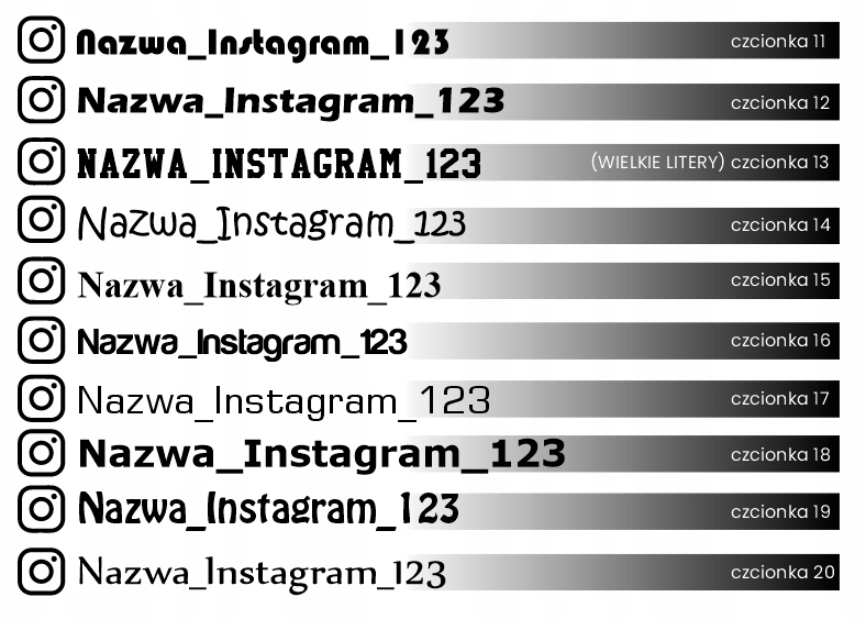 W przypadku braku informacji o czcionce i kolorze napisów, naklejkę wykonamy w kolorze białym z użyciem czcionki nr 1