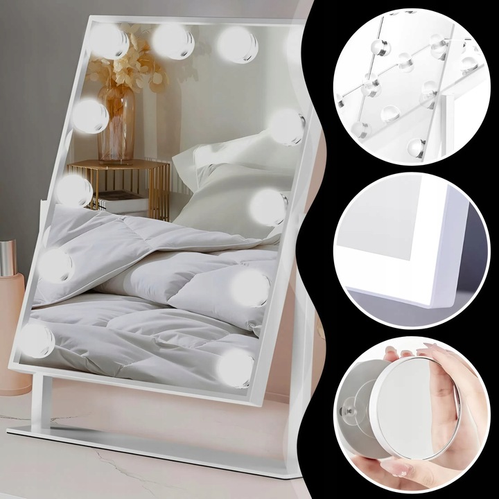✅ Tak – 12 diod LED rozmieszczonych na obramowaniu zapewnia równomierne, jasne światło idealne do makijażu i pielęgnacji.
