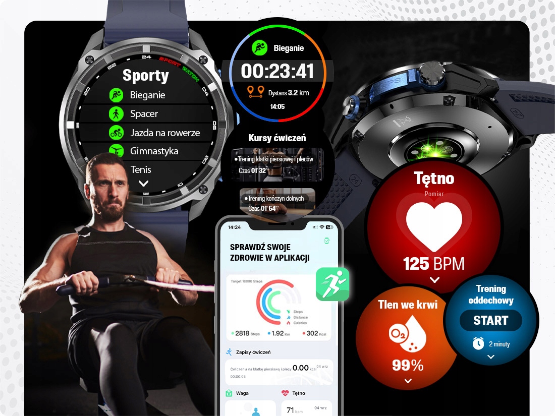 Zainwestuj w smartwatch, który wspiera Twój aktywny styl życia! Wytrzymały, wodoodporny (5 ATM) i gotowy na każdą przygodę – zamów już dziś!