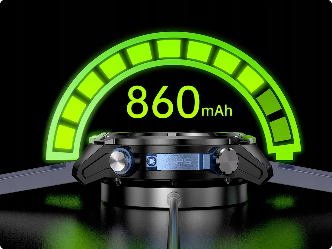 Smartwatch wyposażony jest w baterię 860mAh, zapewniającą do 15 dni pracy przy standardowym użytkowaniu. W trybie Always On Display czas działania wynosi do 4 dni, a wbudowany tryb oszczędzania energii, który automatycznie wyłącza moduły takie jak Bluetooth czy GPS, pozwala wydłużyć czas pracy nawet do 90 dni.