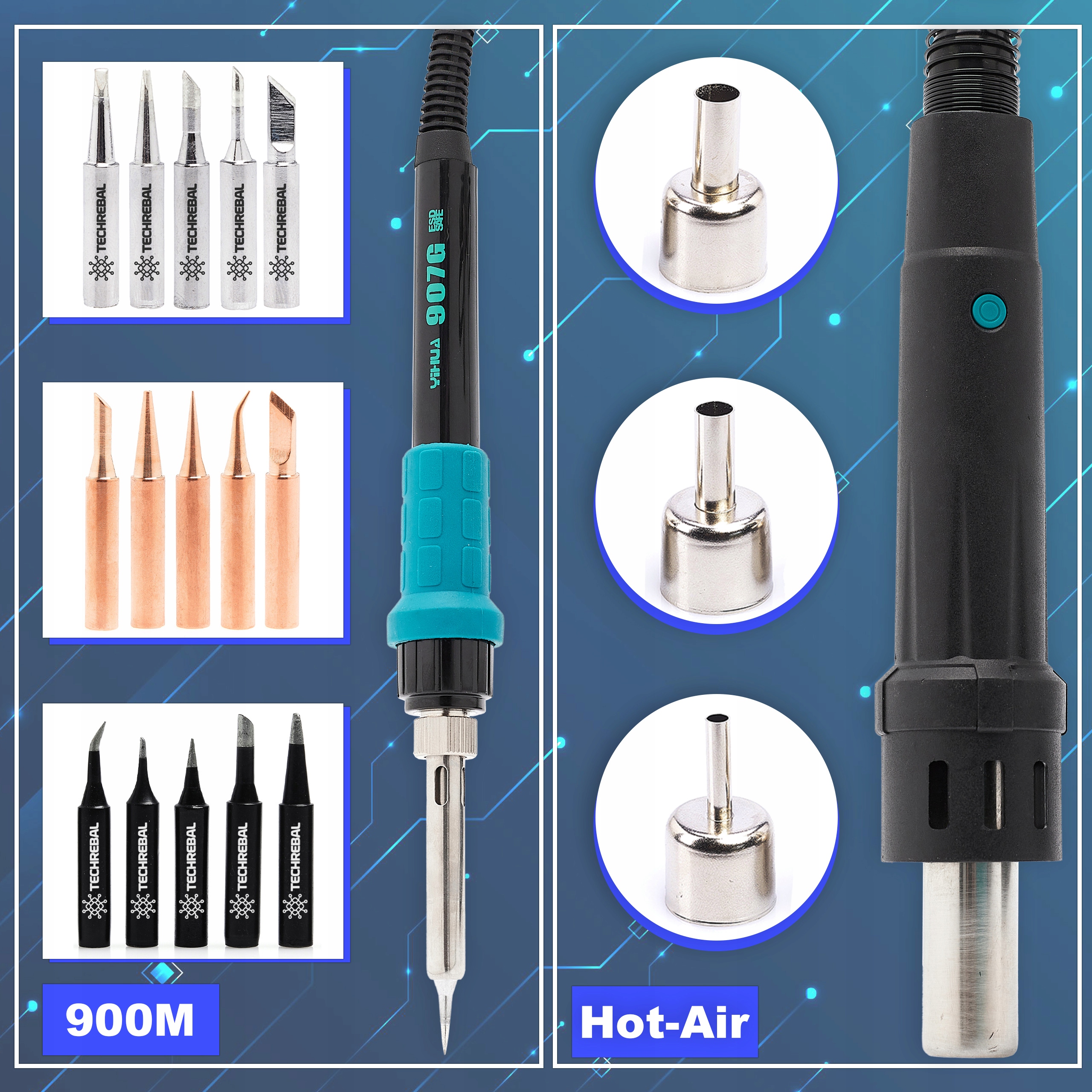 ✅ 2 wyświetlacze z temperaturą rzeczywistą (lutownica i gorące powietrze) Oba systemy pracują niezależnie!