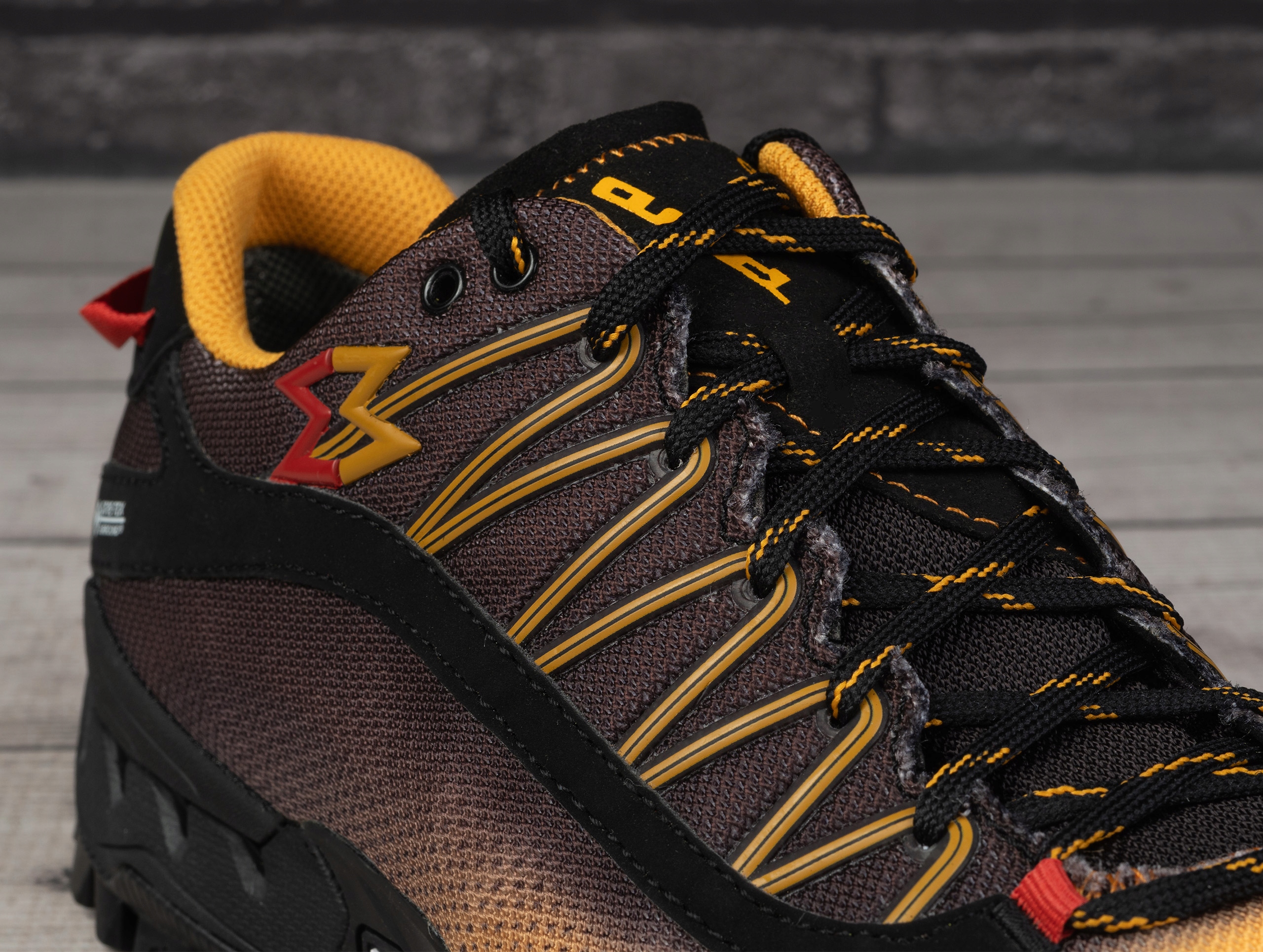 Верх из регенерированной синтетической пряжи с сертифицированный Econyl, оснащенный водонепроницаемой и дышащей обивкой Gore-Tex Surround. Подошва Michelin Free Cross обладает отличным сцеплением, а рисунок обеспечивает максимальное сцепление на мягкой местности. Дизайн обуви основан на концепции анатомически направленного дизайна, проверенной годами (ADD), который адаптирован к форме стопы, имеет анатомически сформированный язык, точная шнуровка и, что не менее важно, более широкий кончик пальца комфорт.