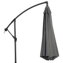 Duży parasol ogrodowy o średnicy 300 cm zapewnia przyjemny cień nawet dla całego zestawu wypoczynkowego czy stołu z krzesłami. Dzięki konstrukcji na wysięgniku zyskujesz swobodę ustawienia mebli, a elegancki kolor szary antracytowy doskonale uzupełnia zarówno nowoczesny, jak i klasyczny ogród.