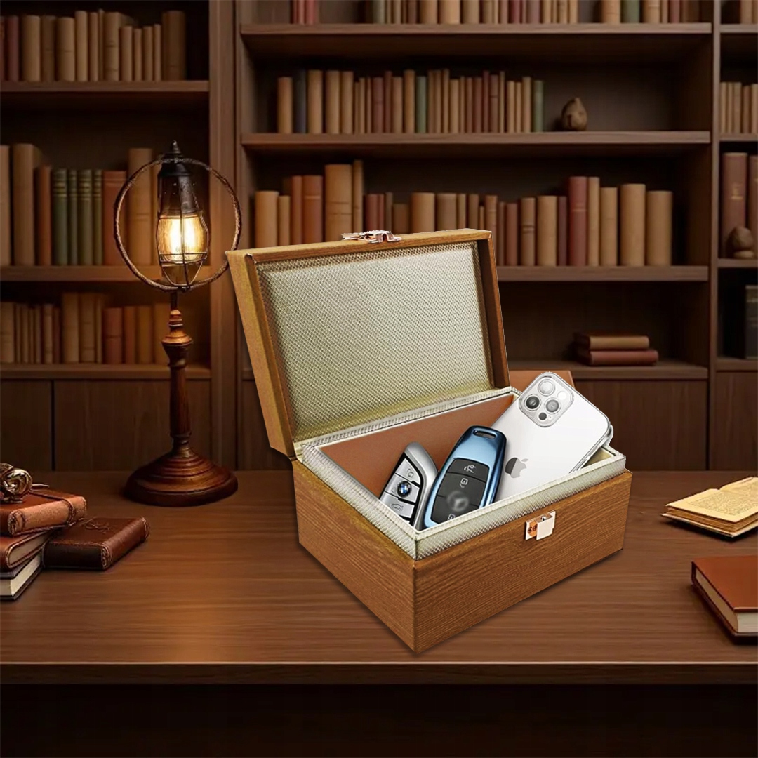 Specjalna siatka Faradaya umieszczona wewnątrz pudełka skutecznie blokuje fale radiowe (RFID, NFC, Wi-Fi, Bluetooth). Dzięki temu kluczyki samochodowe są odizolowane od niepożądanych sygnałów i w pełni zabezpieczone przed próbą kradzieży metodą „na walizkę”.