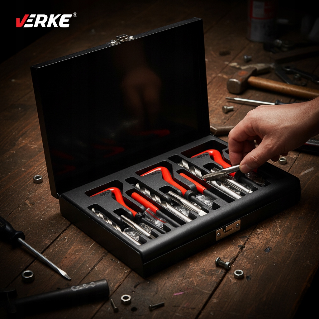 Profesjonalny zestaw VERKE do naprawy gwintów umożliwia łatwe przywrócenie funkcjonalności uszkodzonych gwintów w elementach metalowych. Dzięki wysokiej jakości wykonaniu, zestaw jest niezastąpiony w warsztatach mechanicznych, serwisach oraz w zastosowaniach hobbystycznych.
