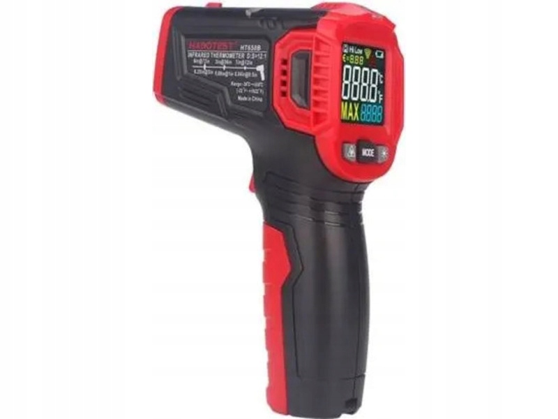 Pirometr HABOTEST HT650B oferuje precyzyjny i szybki pomiar, dostarczając wynik w mniej niż 0,5 sekundy. Jest prosty w obsłudze i wygodny w użytkowaniu, dzięki czemu korzystanie z niego nie sprawia trudności. Urządzenie zostało wyposażone w alarm przekroczenia temperatury oraz czytelny, kolorowy wyświetlacz LCD. Dzięki temu jest wszechstronny i nadaje się do wielu zastosowań. Zasilany dwiema bateriami AAA 1,5 V, ma kompaktowe wymiary 148 x 102 x 46 mm i waży zaledwie 100 g.