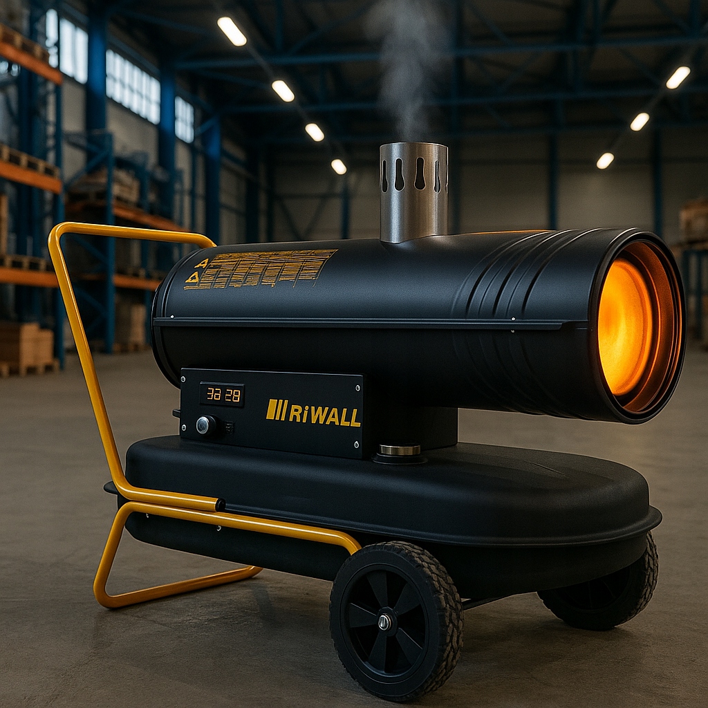 Profesjonalna nagrzewnica olejowa Riwall Pro o mocy 20 kW, wyposażona w komin do odprowadzania spalin, która zapewnia wydajne, szybkie i bezpieczne ogrzewanie przestrzeni użytkowych. Idealna do warsztatów, magazynów, hal produkcyjnych oraz innych pomieszczeń, w których priorytetem jest czyste powietrze i komfort termiczny.