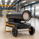Nagrzewnica została wyposażona w mocne koła transportowe oraz praktyczny uchwyt, co pozwala na szybkie i wygodne przemieszczanie jej w dowolne miejsce. Solidne wykonanie gwarantuje odporność na intensywną eksploatację w trudnych warunkach.