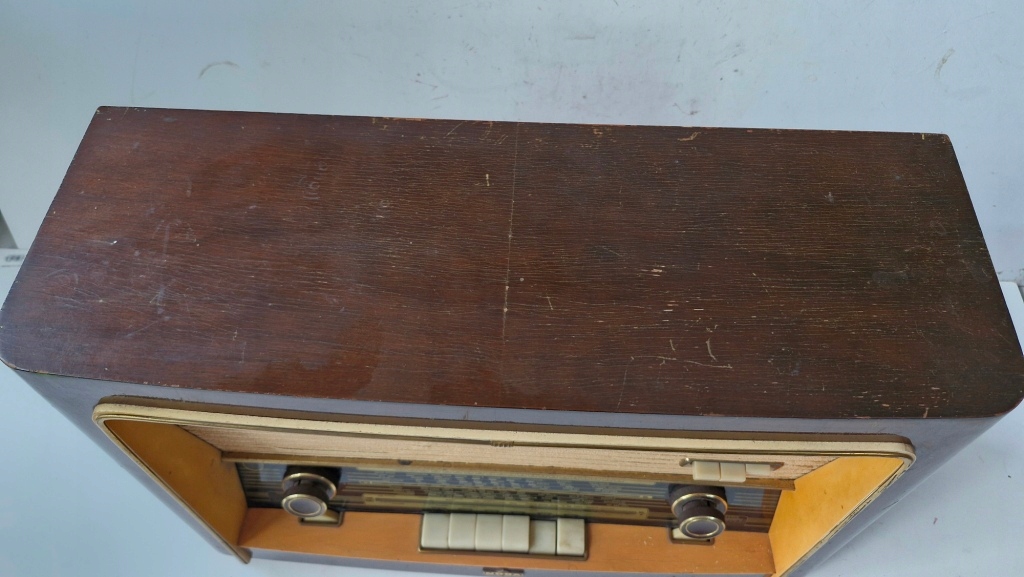 MAM DO SPRZEDANIA STARE ZABYTKOWE DREWNIANE RADIO NORA 9/6/3 RADIO POSIADA NORMALNE ŚLADY OD UŻYTKOWANIA W POSTACI DROBNYCH ZABRUDZEŃ I ZADRAPAŃ, OBUDOWA W DOBRYM STANIE, POTENCJOMETRY I PRZYCISKI W PEŁNI SPRAWNE. RADIO WŁĄCZA SIĘ ALE JEST NIE PRZESTROJONE, STAN DOSKONALE WIDAĆ NA ZDJĘCIACH DODANYCH DO AUKCJI. SPRZEDAJĘ TOWAR ZE ZDJĘĆ. KOMPLET JAK NA ZDJĘCIACH.