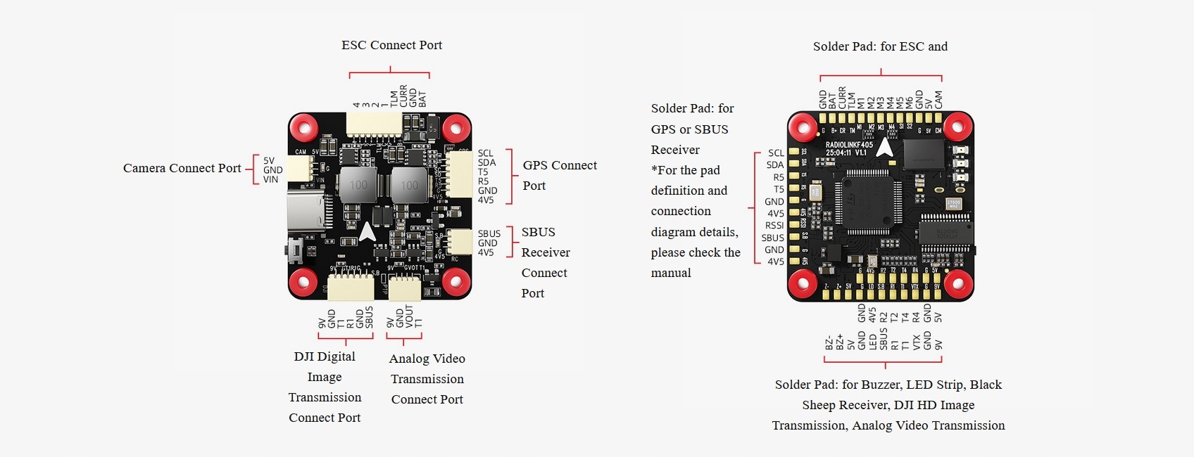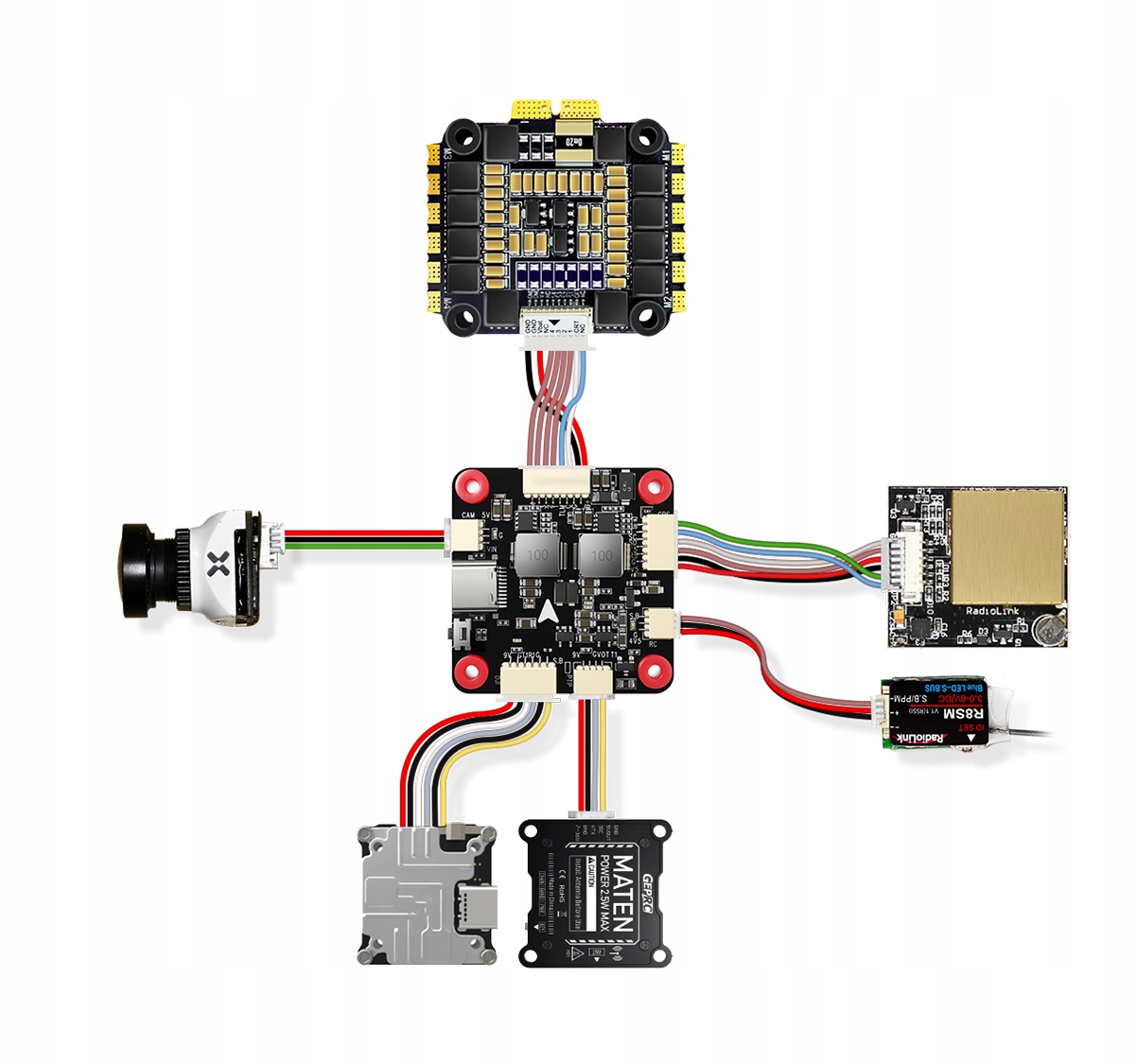 Kontroler lotu RadioLink F405 to kompleksowy system sterowania lotem, który łączy wysoką wydajność, wyjątkową niezawodność oraz inteligentne wzornictwo. Jest dostosowany do zastosowań w różnych scenariuszach, takich jak drony wyścigowe, samoloty czy wielowirnikowe UAV. Łącząc dekadę niezależnych prac badawczo-rozwojowych RadioLink w dziedzinie kontroli lotu z filozofią projektowania sprzętu klasy przemysłowej, F405 zapewnia niezrównane wrażenia ze sterowania i zwiększone bezpieczeństwo lotu.