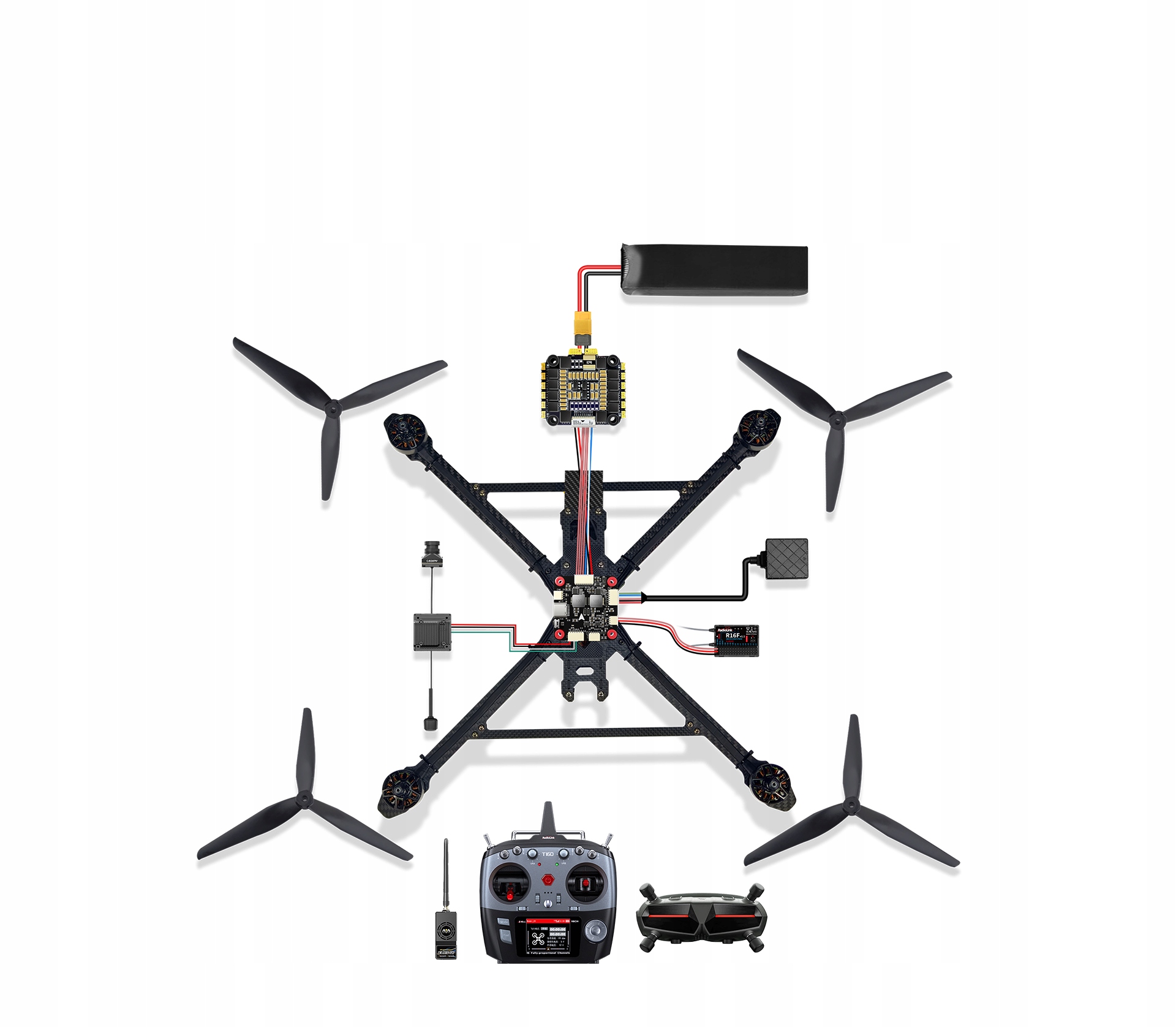 Kontroler lotu F405 współpracuje z 16-kanałową aparaturą T16D, 16-kanałowym odbiornikiem R16F, GPS TS100 o dokładności pozycjonowania 50 cm, cyfrową transmisją obrazu wysokiej rozdzielczości DJI/CADDX, goglami HD oraz modułem dalekiego zasięgu ELRS. Oferujemy niemal wszystkie niezbędne części do drona RC, zapewniając wysoką elastyczność i opłacalność rozwiązań, w tym szybkie zastosowania w fotografii i filmowaniu z powietrza.