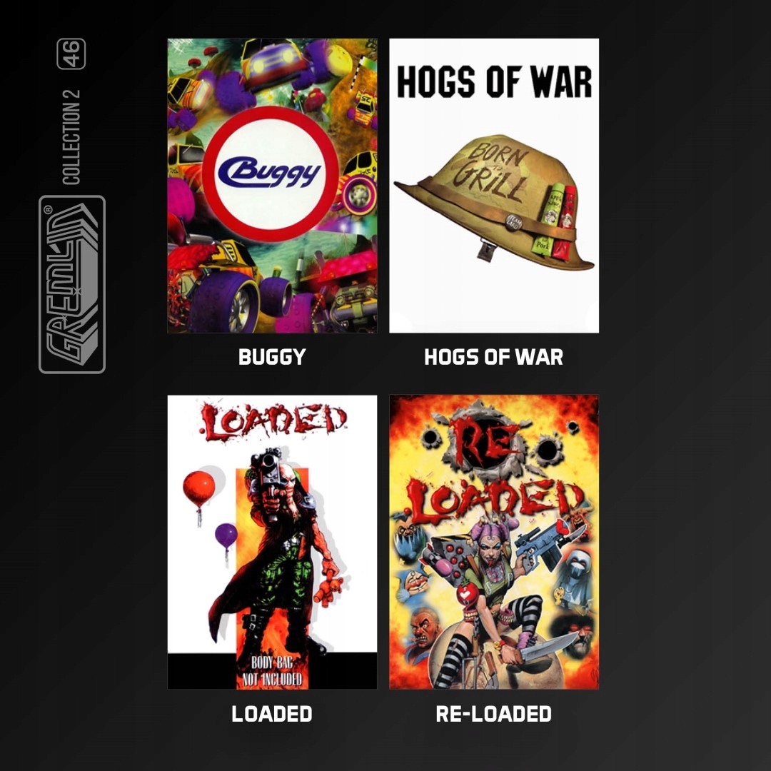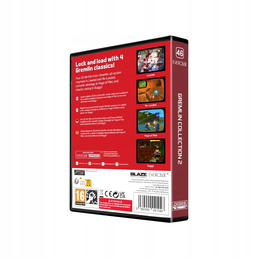 Jesteś gotowy na nostalgię z końca lat 90. lot? Gremlin powraca na Evercade z 4 klasycznymi 32-bitowymi grami na jednej Giga Cart! Rozpętaj całkowitą masakrę w hiper gwałtownych i szalenie pełnych akcji grach Loaded oraz w kontynuacji Re-Loaded. Walcz o kontrolę nad wszechpotężnym Swillem w zabawnie komediowej grze strategicznej Hogs of War i ścigaj się w rozległym, pełnym tajemnic środowisku w zdalnie sterowanym buggy wyścigowym w grze Buggy.