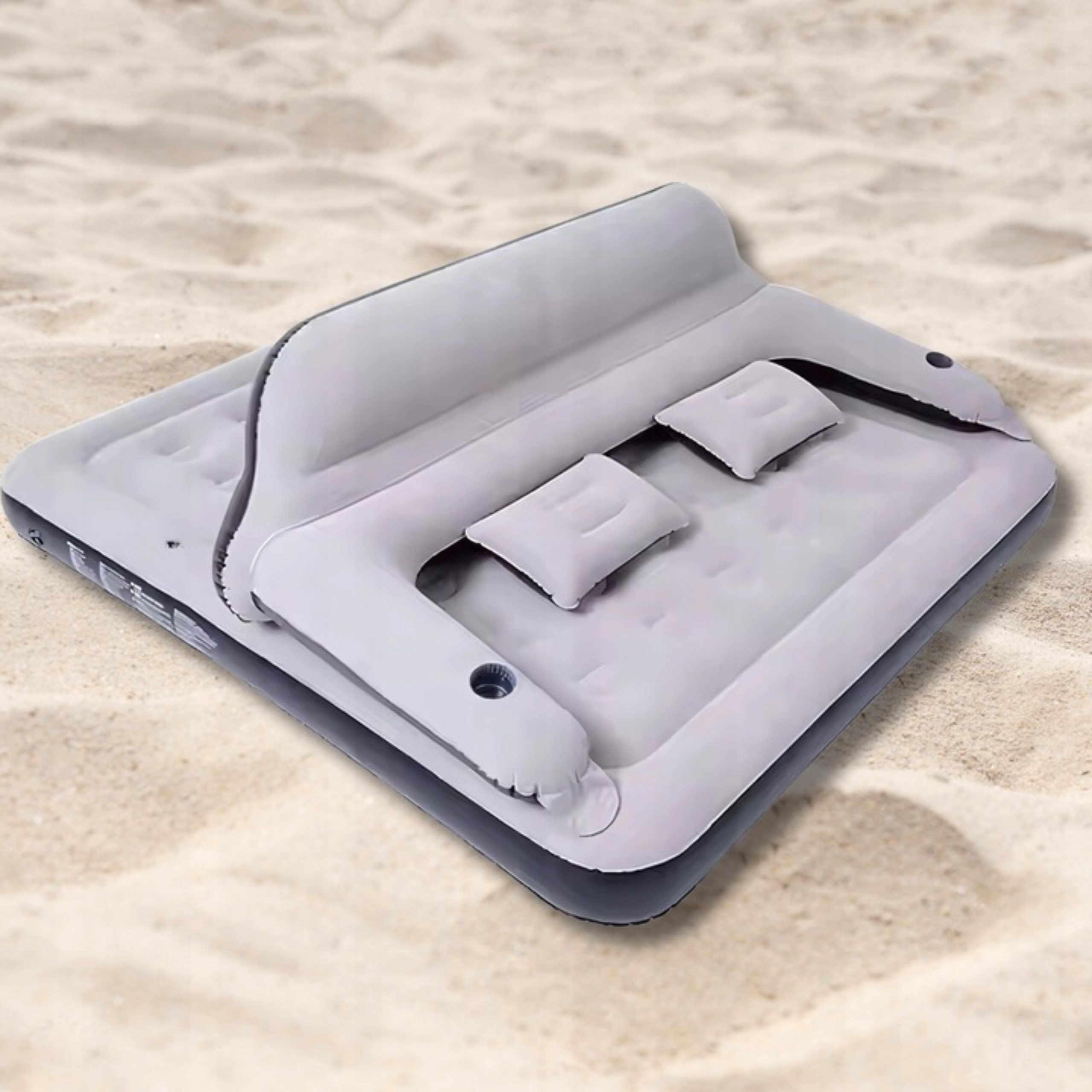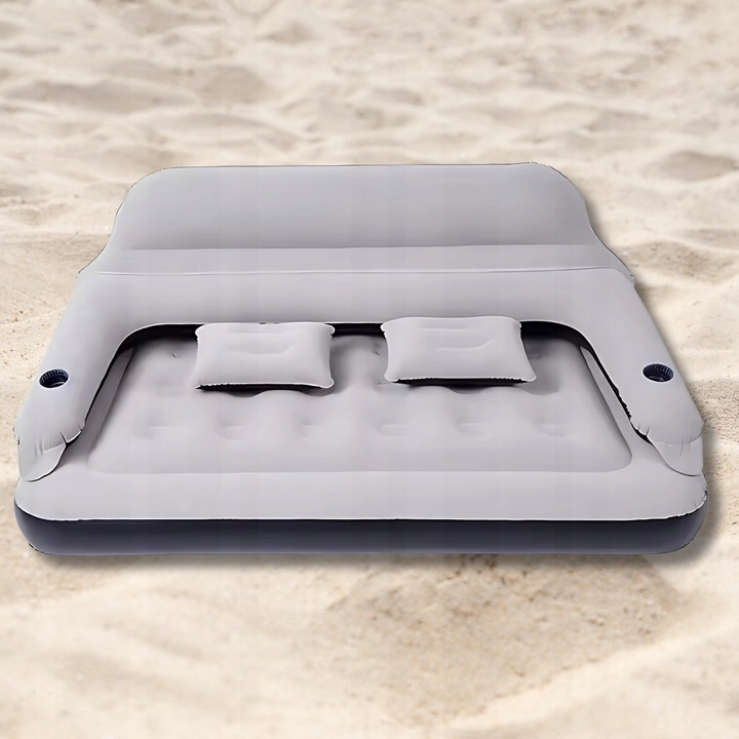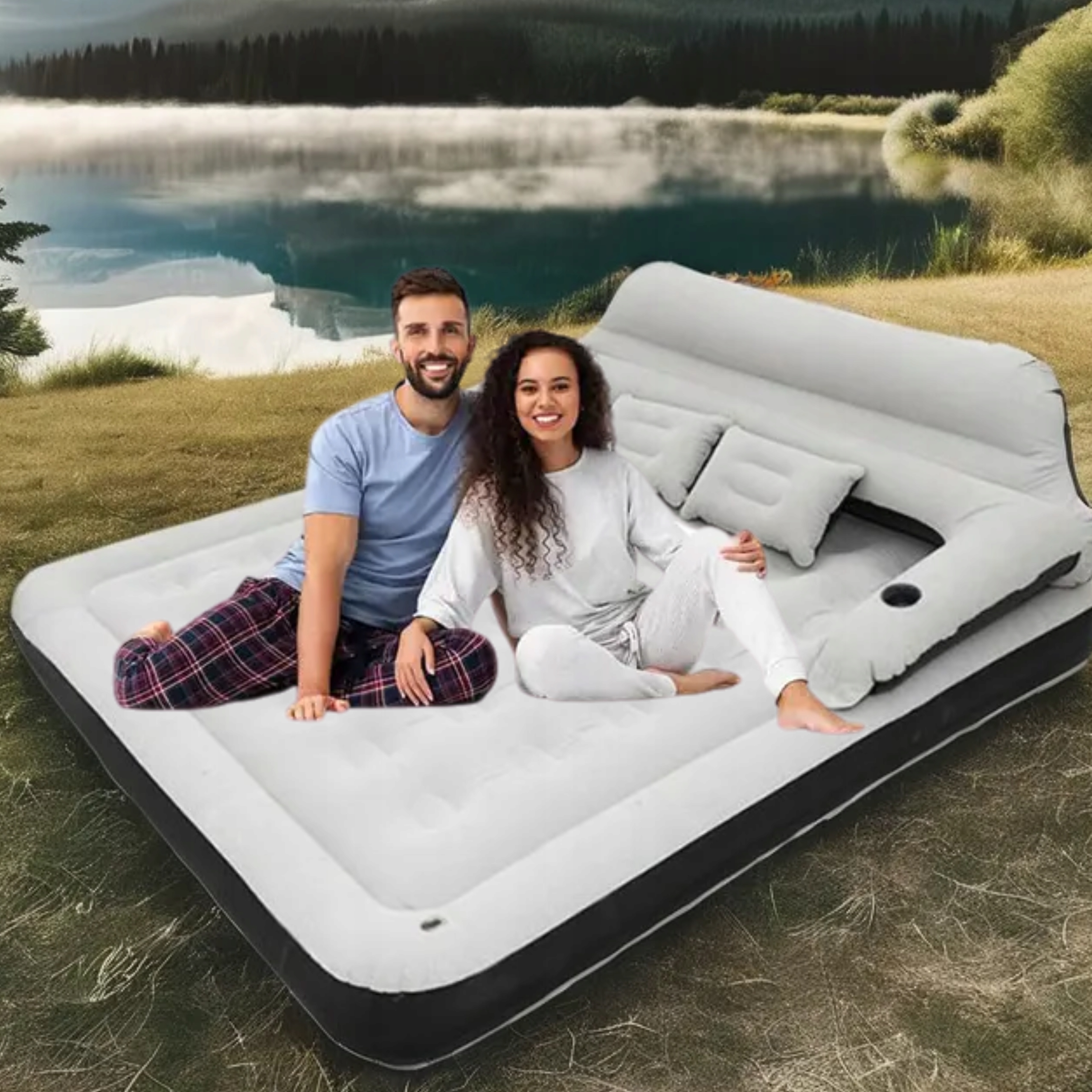 Materac Dmuchany Podwójny z Oparciem to niezawodne rozwiązanie dla każdego, kto ceni szybki odpoczynek i maksymalny komfort.