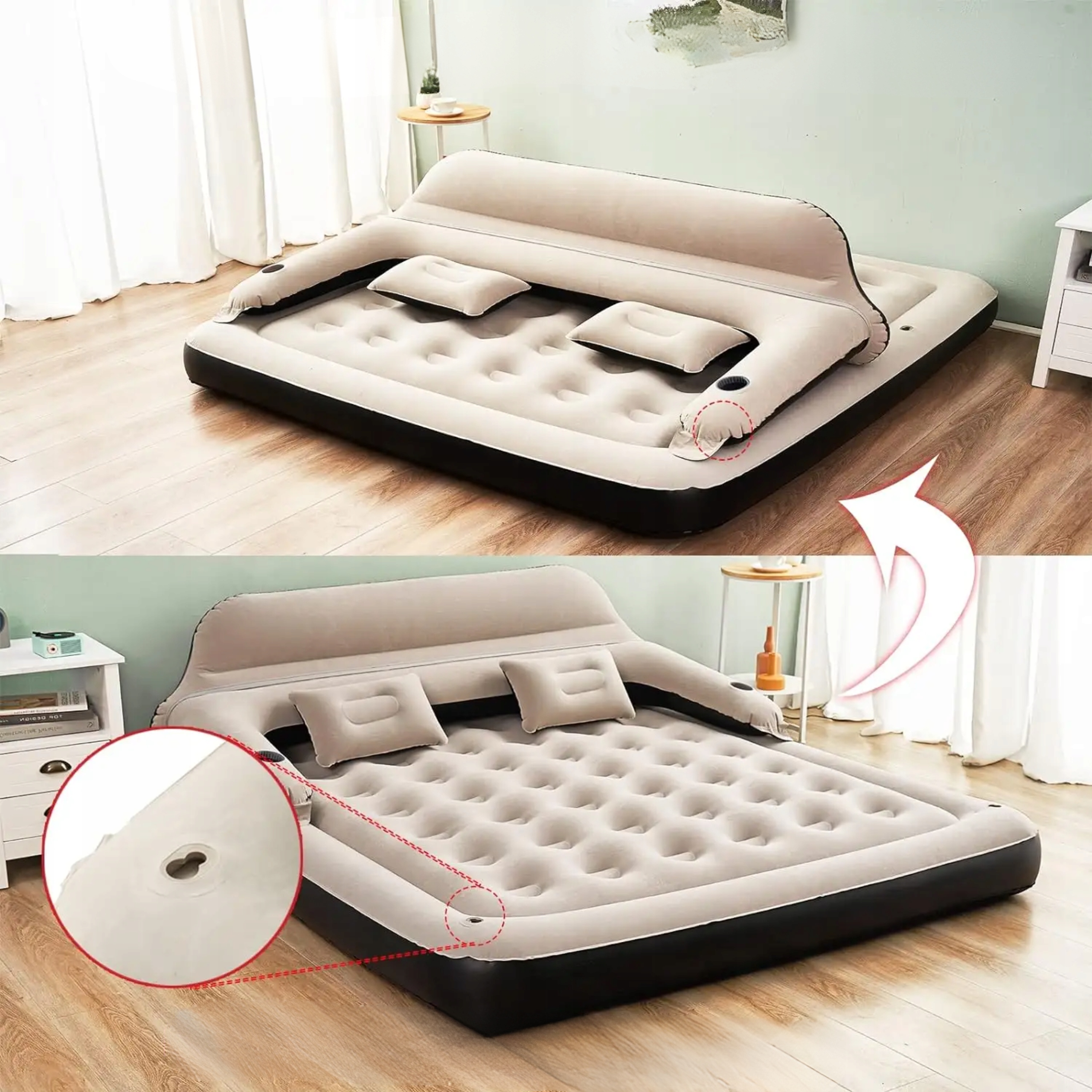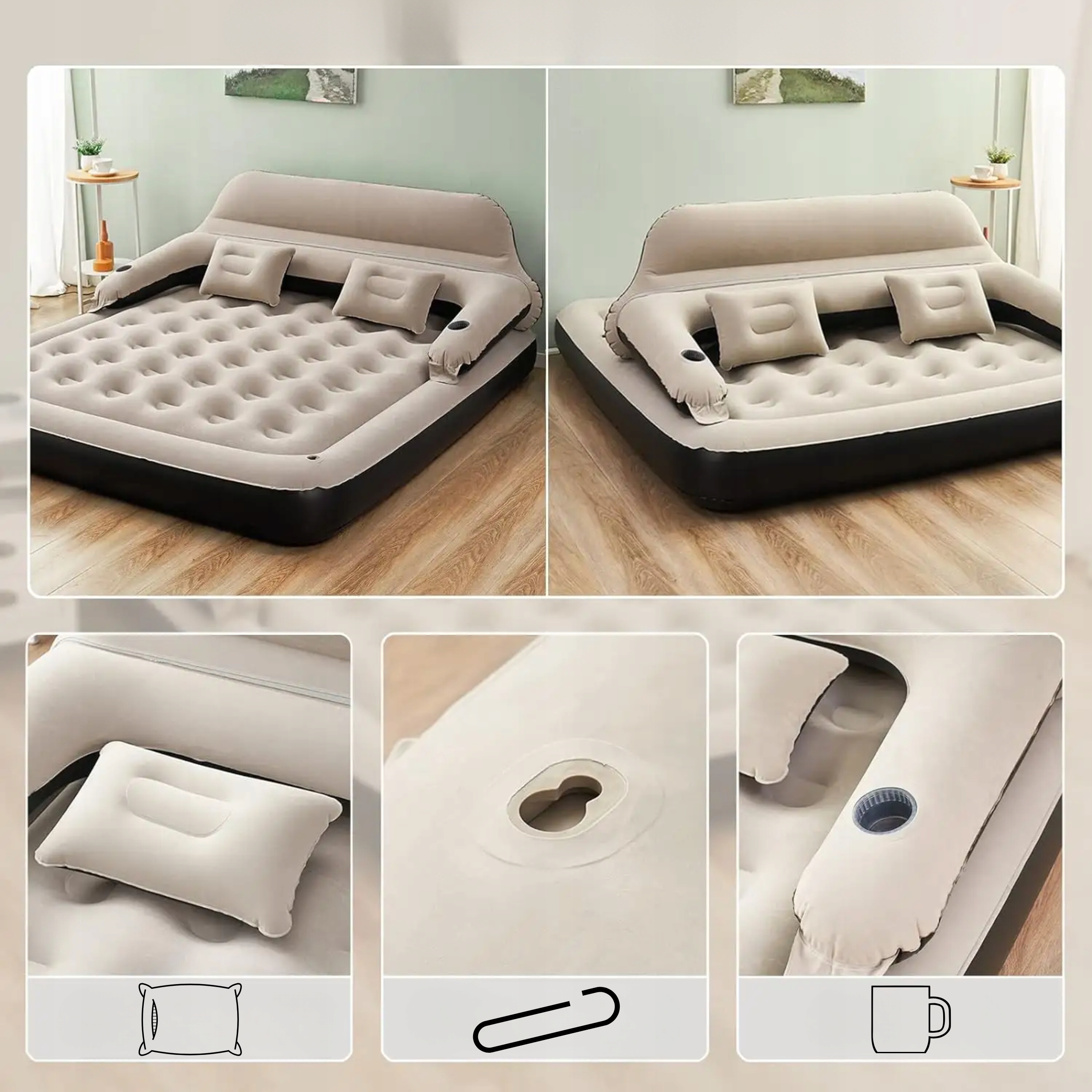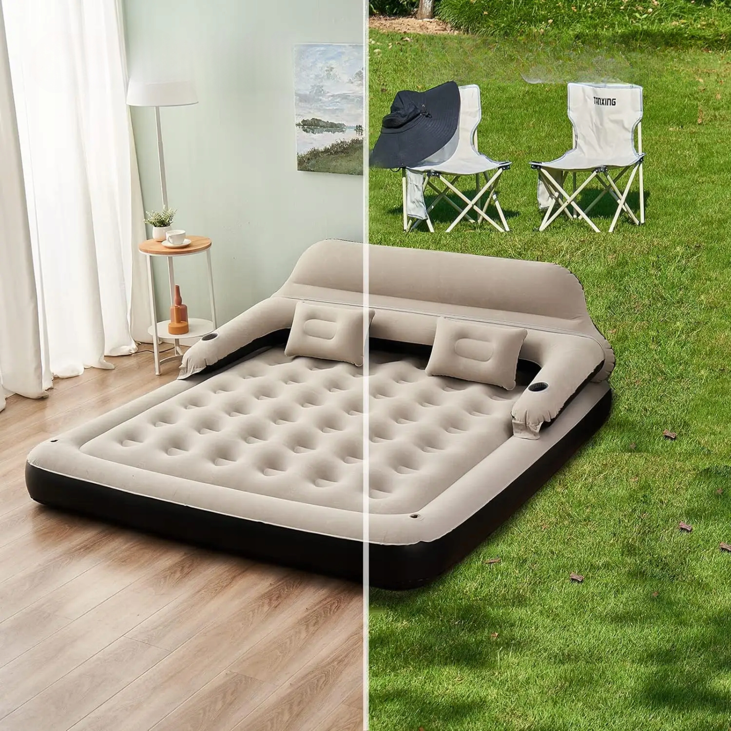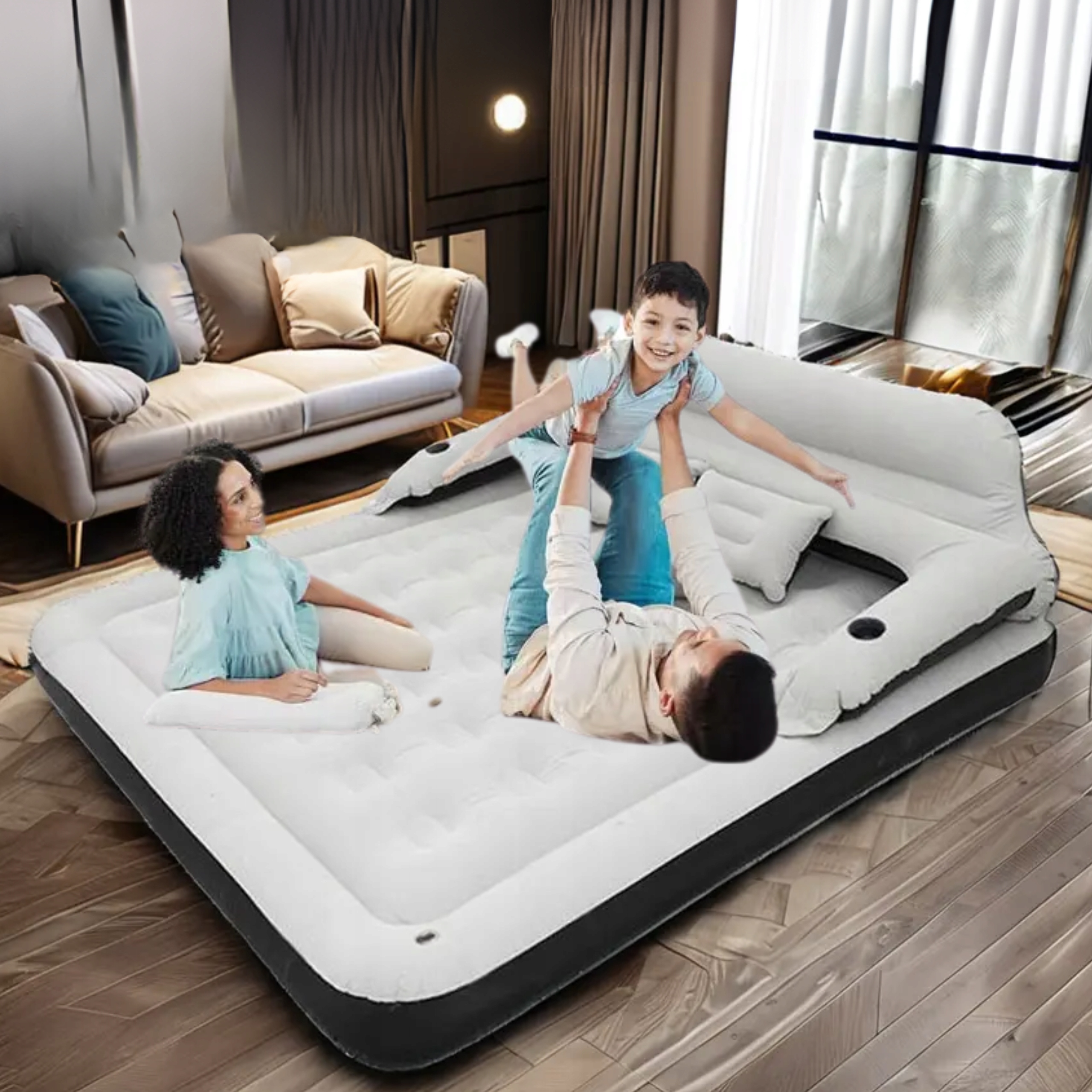Materac Dmuchany Podwójny z Oparciem to niezawodne rozwiązanie dla każdego, kto ceni szybki odpoczynek i maksymalny komfort.