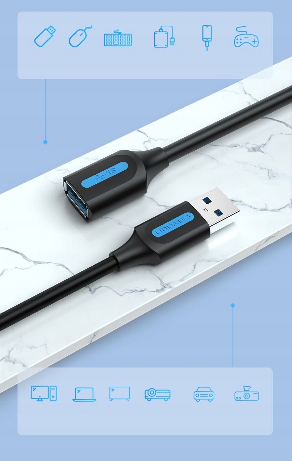 Kabel przedłużający USB 3.0 marki Vention (model CBHBF) to niezawodne rozwiązanie dla użytkowników oczekujących stabilności połączenia i wysokiej wydajności transmisji danych. Wyposażony w standard USB 3.0, umożliwia transfer z prędkością sięgającą 5 Gbps, co pozwala na przesłanie 1 GB danych w zaledwie 5 sekund. Konstrukcja kabla została zoptymalizowana pod kątem trwałości, ergonomii i odporności na zakłócenia, a zgodność z większością urządzeń USB czyni z niego wszechstronne rozwiązanie zarówno do biura, jak i do domowego centrum multimedialnego. Kabel o długości 1m sprawdzi się wszędzie tam, gdzie liczy się wygodne podłączenie bez kompromisów w jakości sygnału.