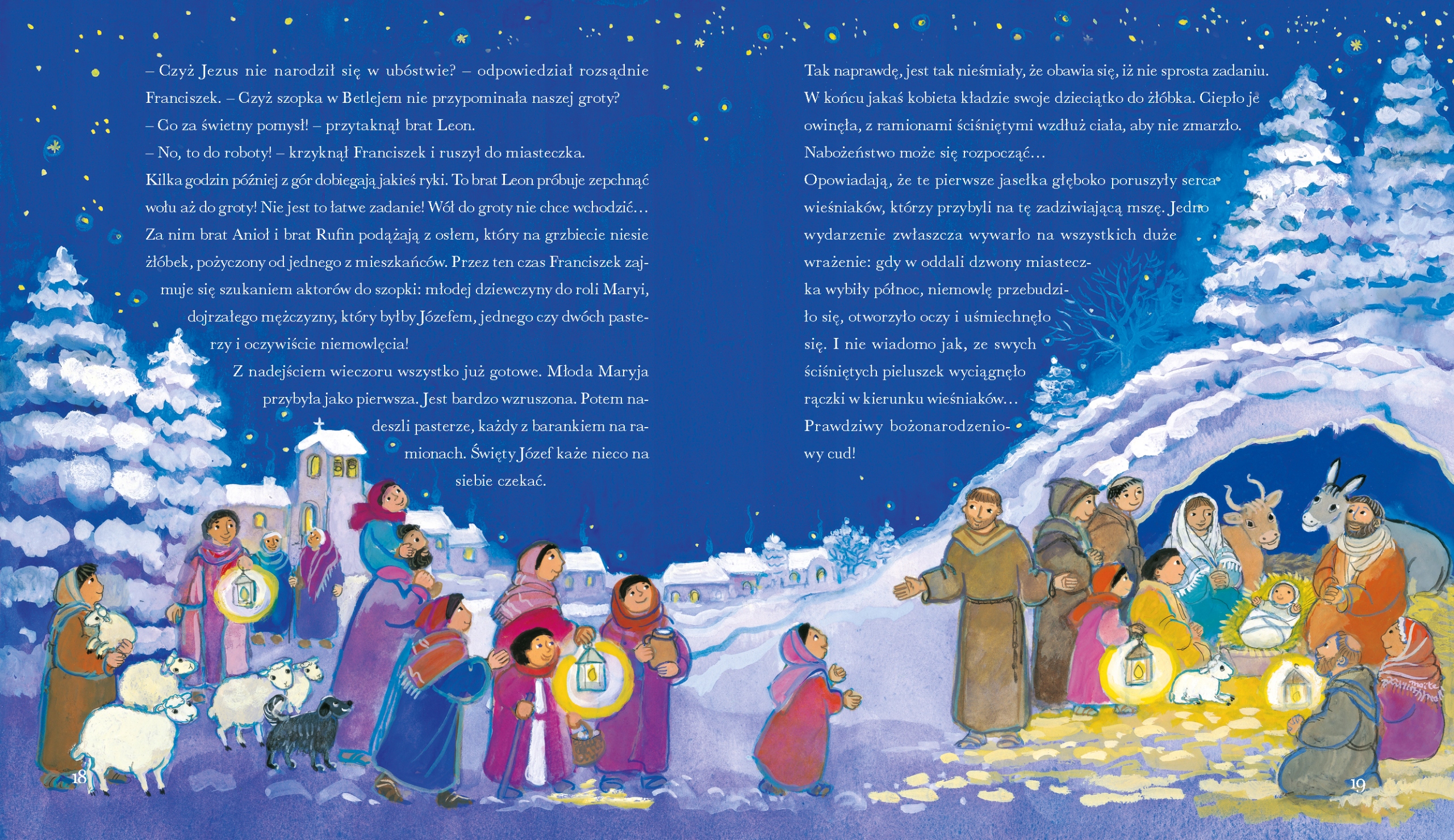 Historie są różne, zarówno te klasyczne, jak Pokłon Trzech Króli, Herod dowiadujący się o nadejściu Mesjasza czy oczywiście samo Boże Narodzenie, jak i bardziej zaskakujące, jak na przykład te o zupełnie niezwykłej pielęgniarce, o czwartym Mędrcu czy o Bożej niespodziance. Wszystkie opowieści prezentują morał osadzający się na dobroci i miłości.