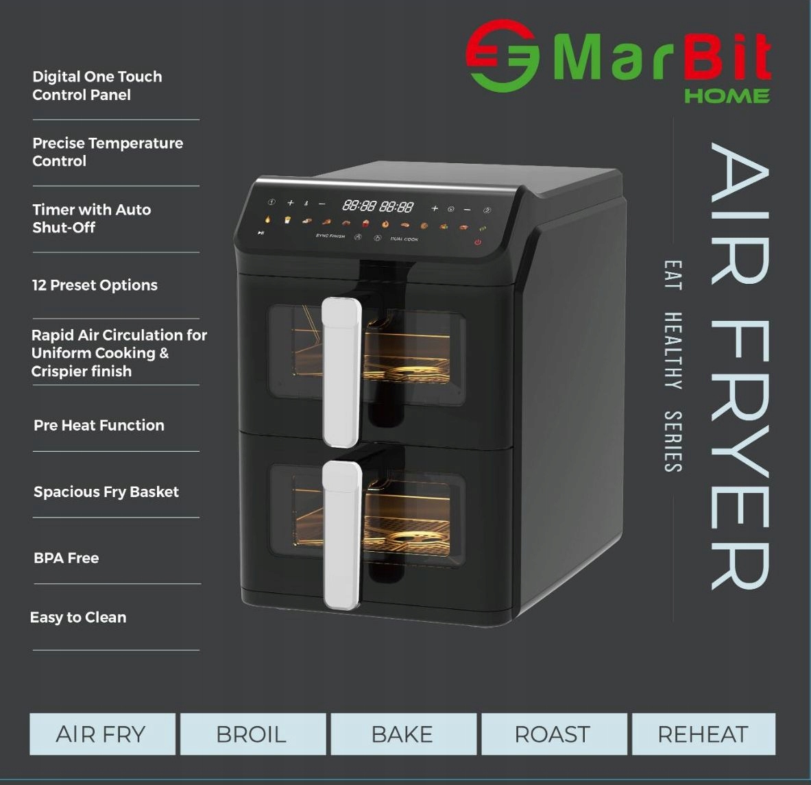 Frytownica Air Fryer MarBit pozwoli Ci przygotować chrupiące potrawy praktycznie bez użycia tłuszczu! Wystarczy tylko jedna łyżka oleju, by delektować się pysznymi frytkami, które nie tylko są zdrowsze, ale również smakują o niebo lepiej niż te przygotowane w głębokim oleju. Urządzenie rozprowadza gorące powietrze z maksymalną prędkością, by każde danie było opieczone równomiernie, zachwyciło Cię idealną chrupkością. Posiłki smażone za pomocą gorącego powietrza i przygotowane bez użycia tłuszczu, to wybór wspierający idealną sylwetkę, a także zdrowie i dobre samopoczucie całej Twojej rodziny!