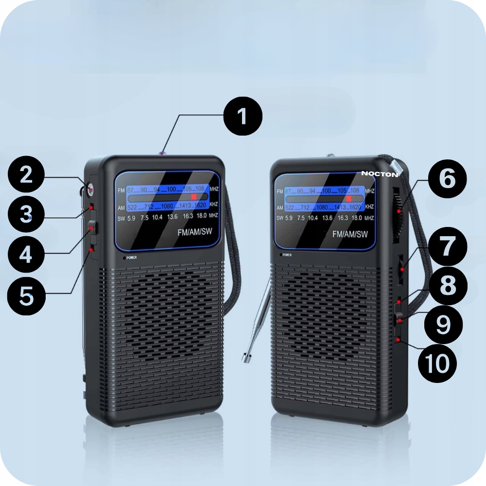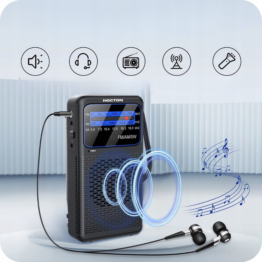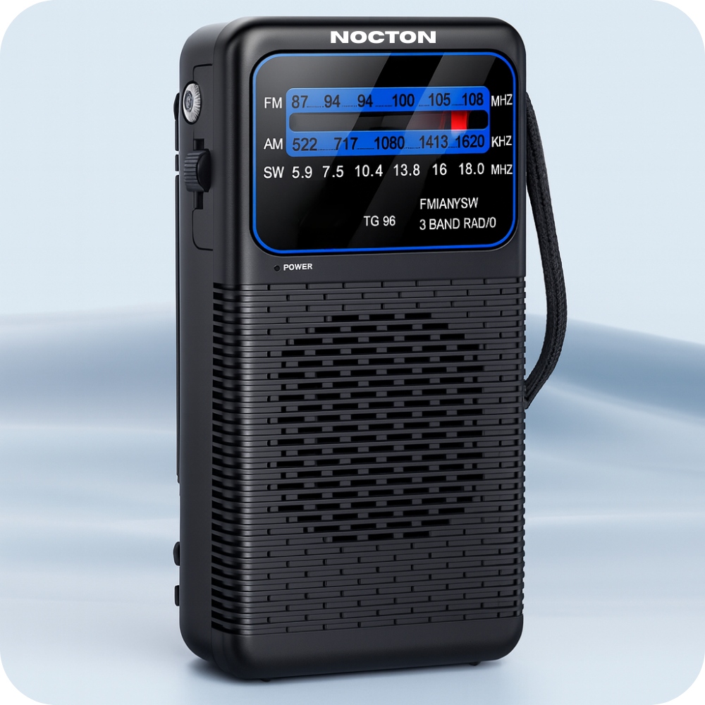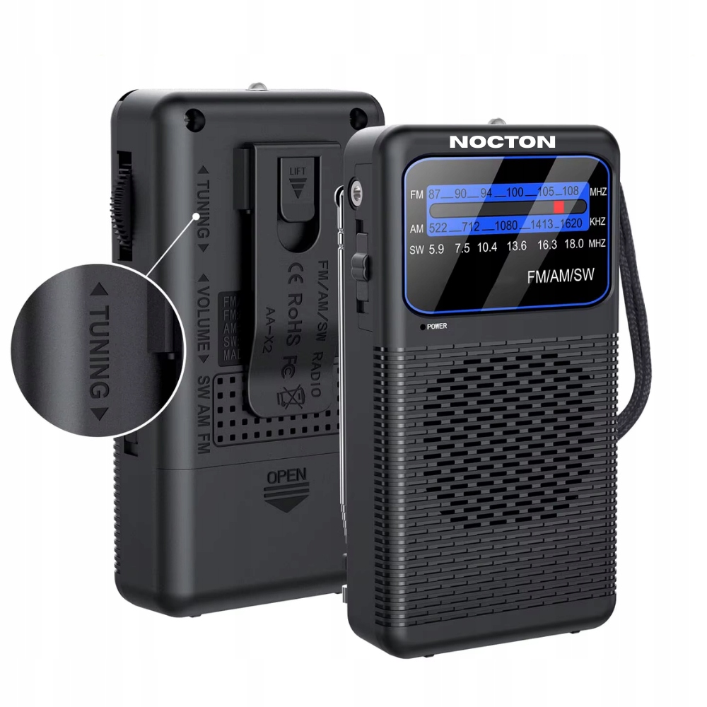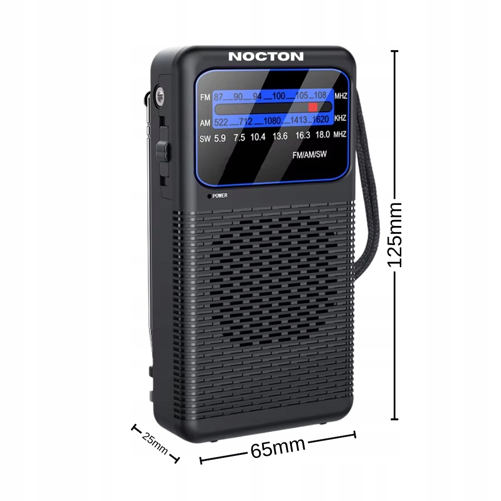 To ultrakompaktowe radio turystyczne NOCTON jest idealnym towarzyszem podróży i sytuacji awaryjnych. Dzięki zasilaniu łatwo dostępnymi bateriami AA, działa niezawodnie w każdych warunkach, bez potrzeby dostępu do prądu. Odbiera na trzech pasmach (FM/AM/SW), co pozwala na słuchanie stacji z całego świata. Wyposażone w teleskopową antenę, klips do paska i gniazdo słuchawkowe, łączy w sobie niezwykłą poręczność i wszechstronność, gwarantując stały dostęp do informacji i rozrywki, gdziekolwiek jesteś.