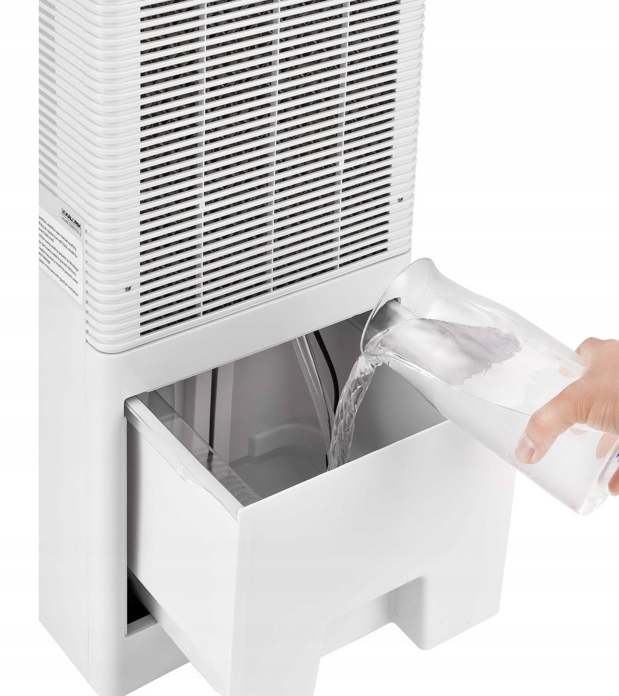 Jest to naprawdę wygodne: nie trzeba instalować węża doprowadzającego wodę ani systemu odpływowego, po napełnieniu 8 l zbiornika na wodę działa autonomicznie i nieprzerwanie przez ponad 8 godzin. Pusty, jego waga piórkowa 5,5 kg i kompaktowe wymiary (25 x 25 x 75 cm) pozwalają na bezproblemowe przenoszenie go z jednego pomieszczenia do drugiego.