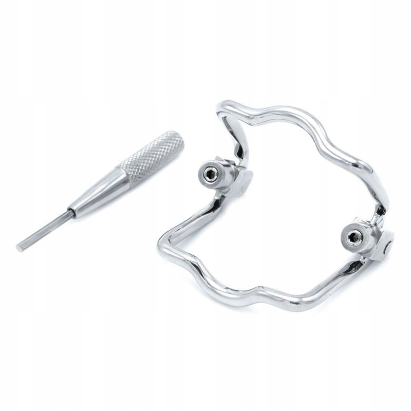 Przyrząd Jaw lock ze stali nierdzewnej skutecznie uciszy niewolnika. Włóż knebel do ust i zagryź zębami, następnie dołączonym kluczem imbusowym ustaw rozmiar otworu rozpieraka i zablokuj.