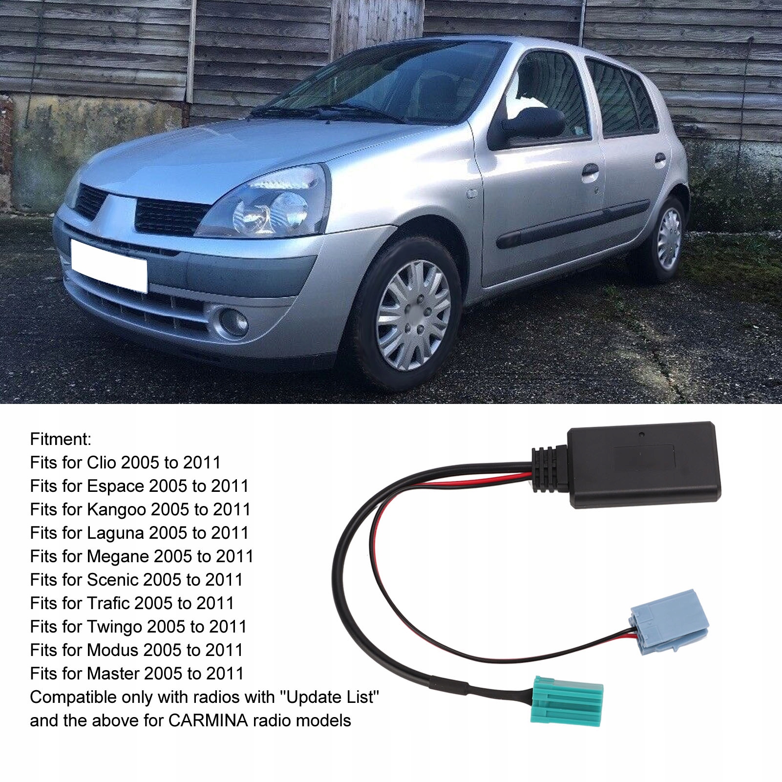 1. FIMPTENT: Adapter moduu Bluetooth jest zamiennikiem CLIO 2005–2011, dla Espace 2005-111 w Kangoo 2005–2011, dla NaMegane 2005 do 2011.