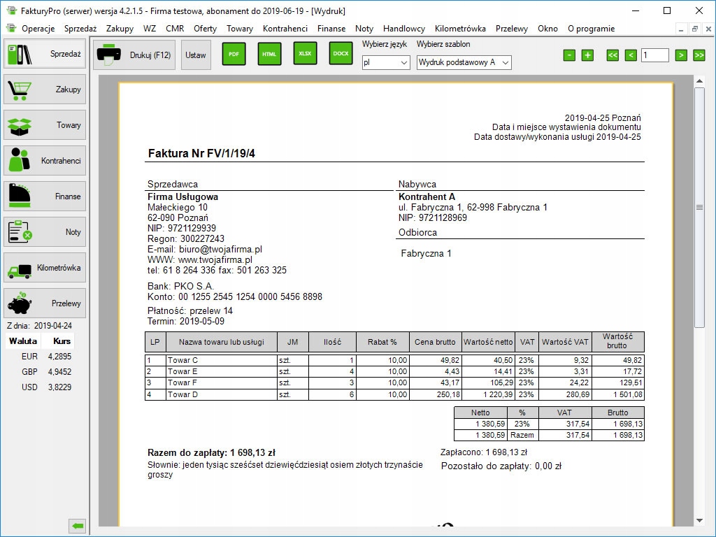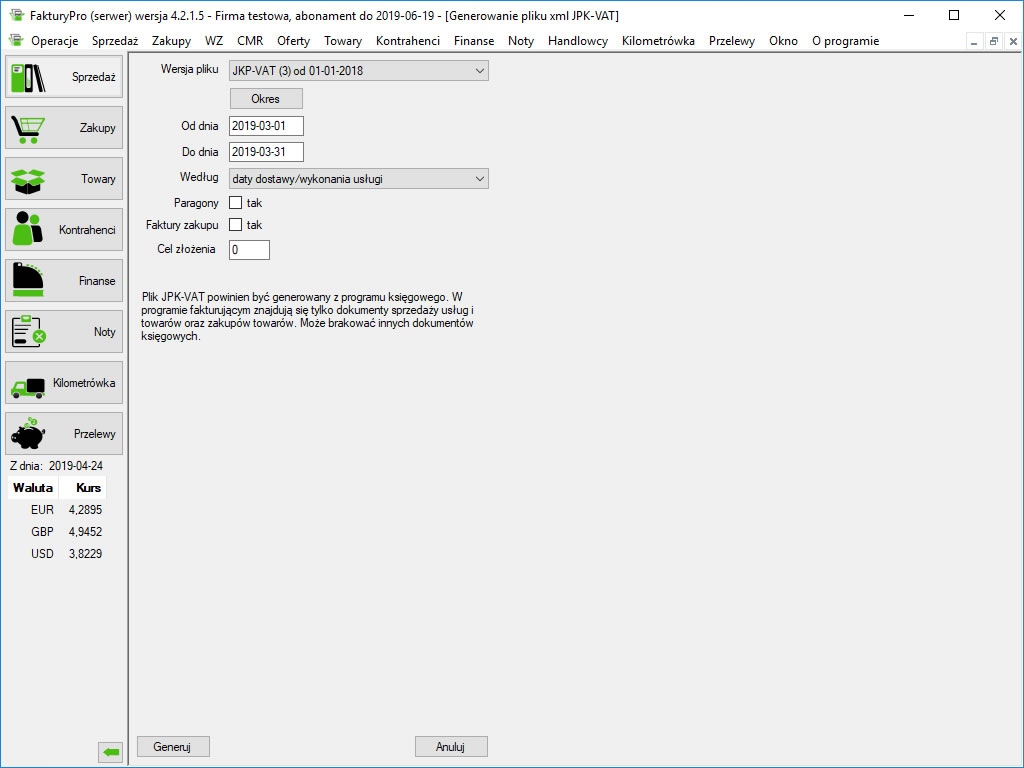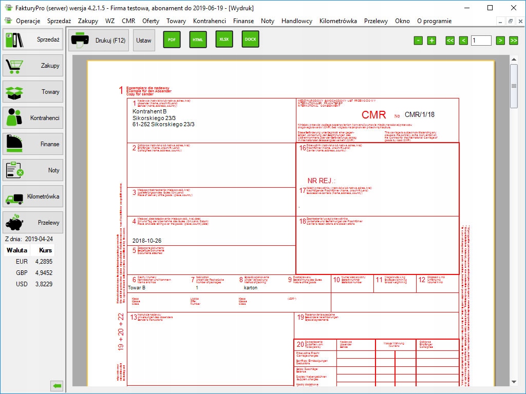 Program pozwala na eksporty w następujących formatach m.in. do programów księgowych: