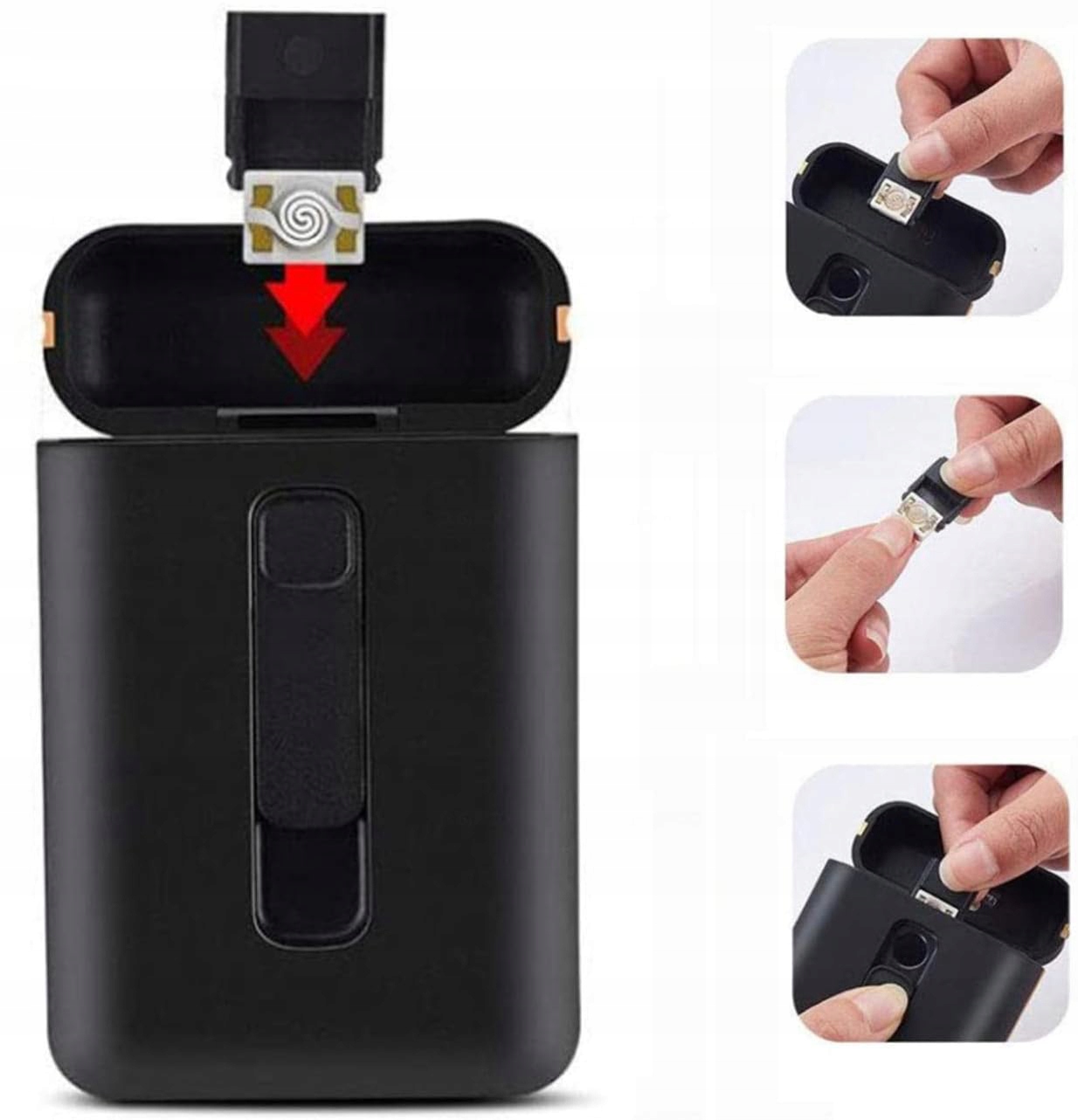 🚬【Zapalniczka wiatroodporna】 Zapalniczka wiatroodporna w tej papierośnicy zapewnia, że możesz zapalić papierosa w wietrznym otoczeniu bez żadnych problemów. Zapewnia niezawodną ochronę przed wiatrem, dzięki czemu płomień pozostaje stabilny, a papieros pali się równomiernie.