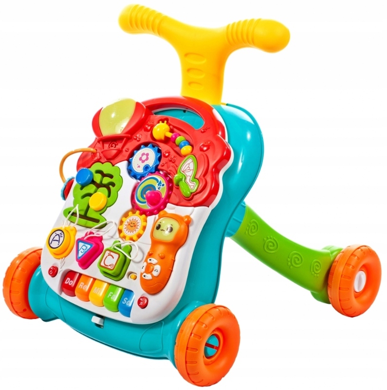 To nie tylko wsparcie przy nauce chodzenia, ale też centrum zabaw z elementami stałymi i wyjmowanymi, które można wykorzystać do samodzielnej zabawy.