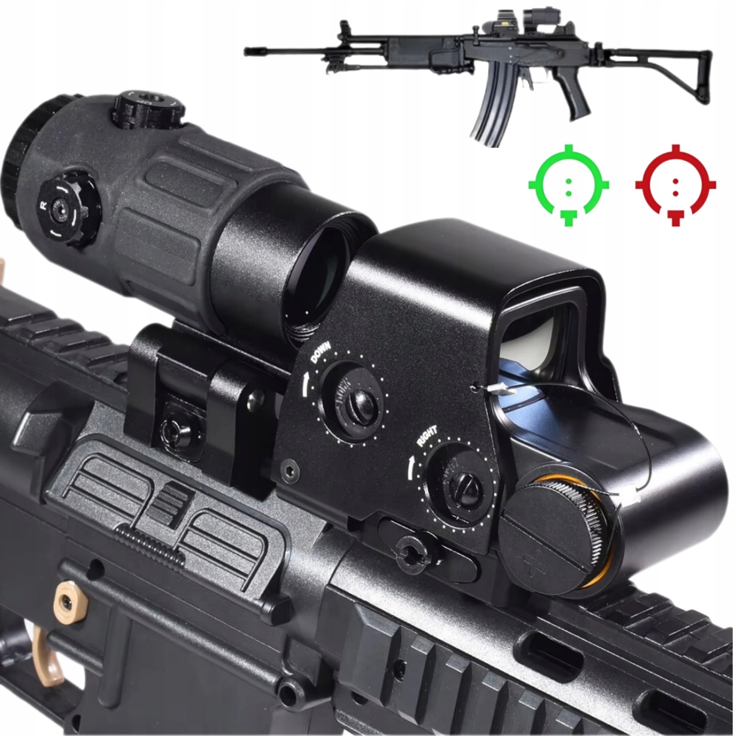 558 GREEN & RED DOT REFLEX SCOPE I G45 5X MAGNIFYING GLASS COMBO, OPTYCZNY HOLOGRAFICZNY HYBRYDOWY CELOWNIK Z LUPĄ G45, SZYBKOZŁĄCZKA ROLLOVER MULTIPLIER, DO MONTAŻU NA SZYNIE 20 MM